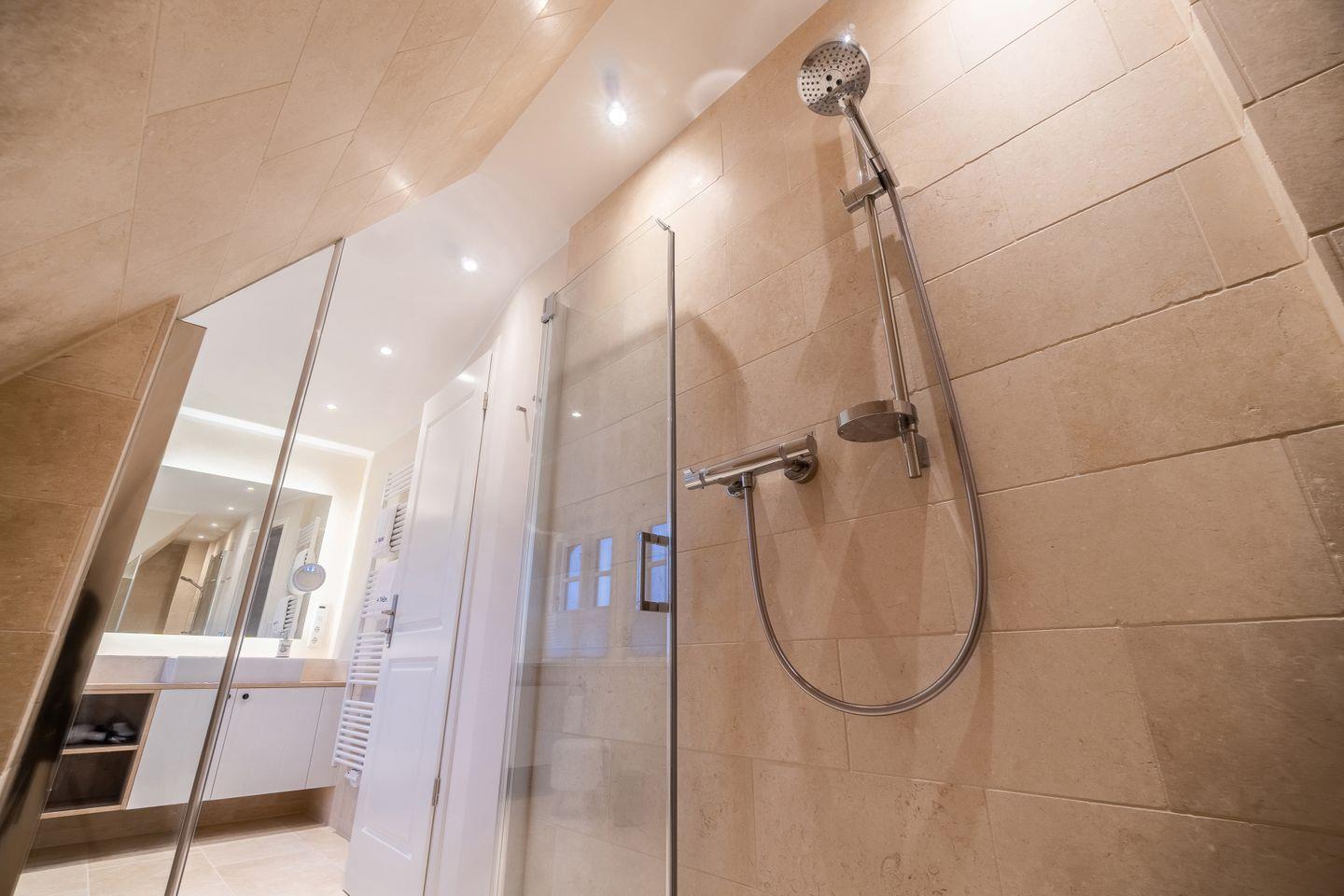 Im Dachgeschoss befindet sich die hauseigene Sauna samt Ruheraum.