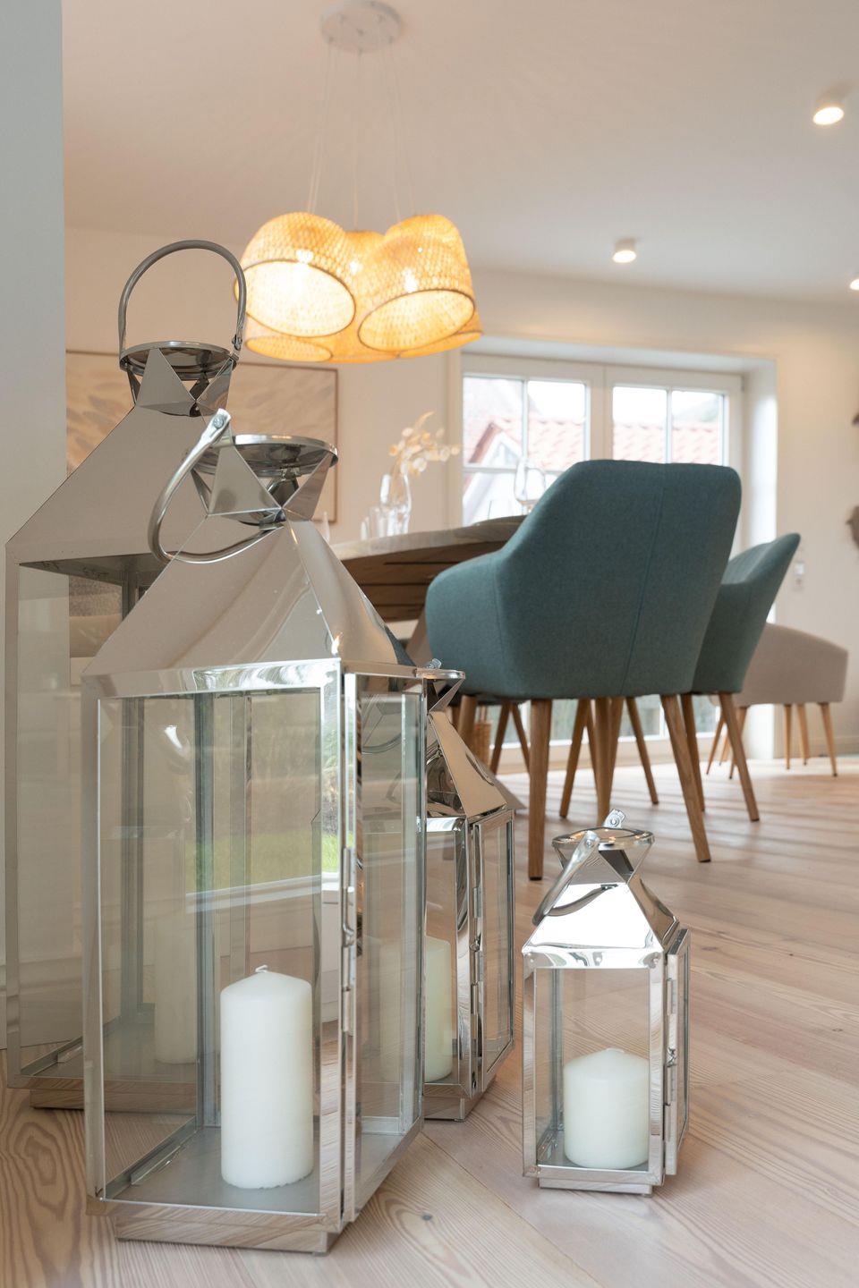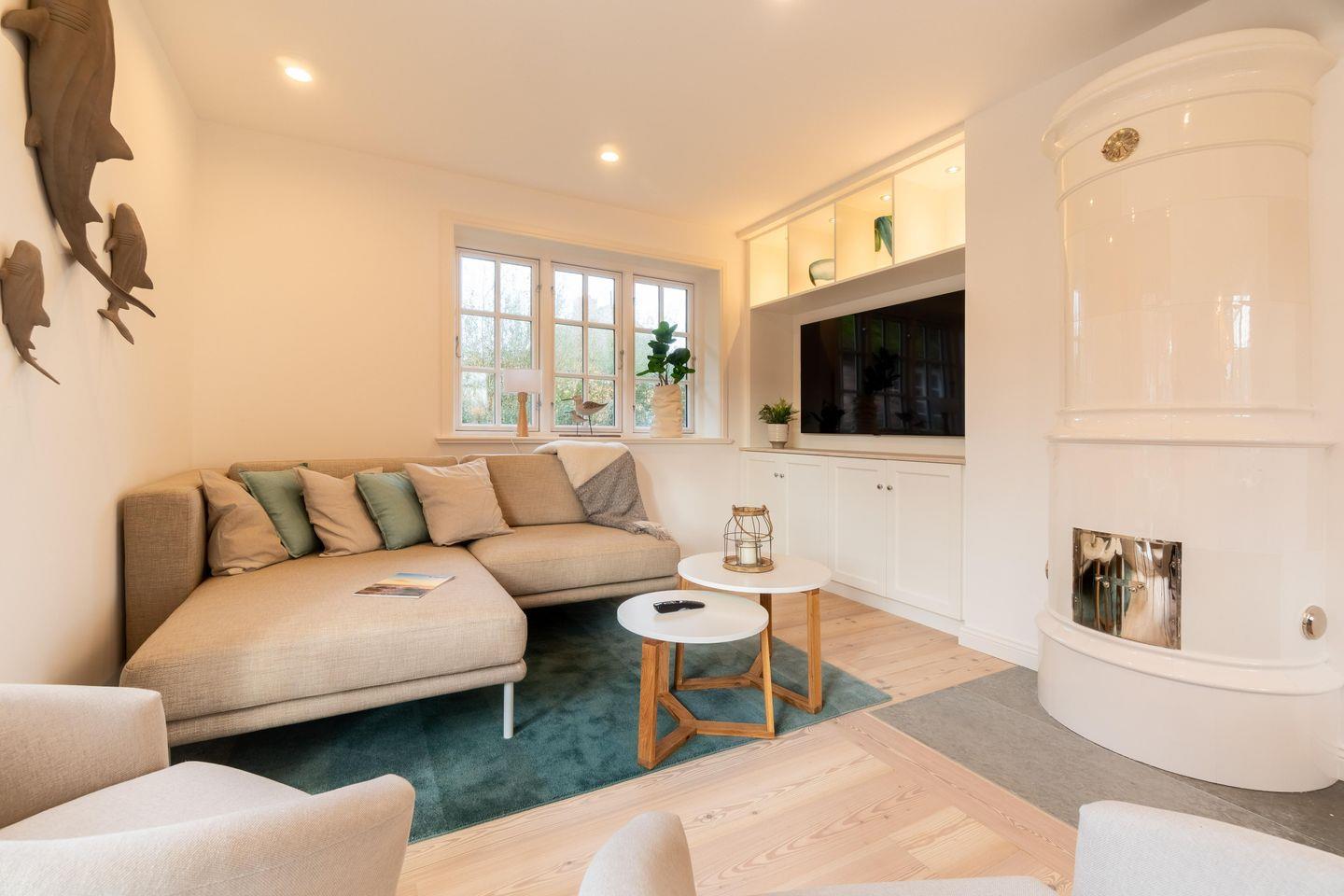 Zu den Highlights der Ferienunterkunft zählen wir u. a. den Original Mylin-Kachelofen, die hauseigene Sauna, die Terrasse im Garten sowie den Ausblick auf die angrenzende Marschlandschaft.