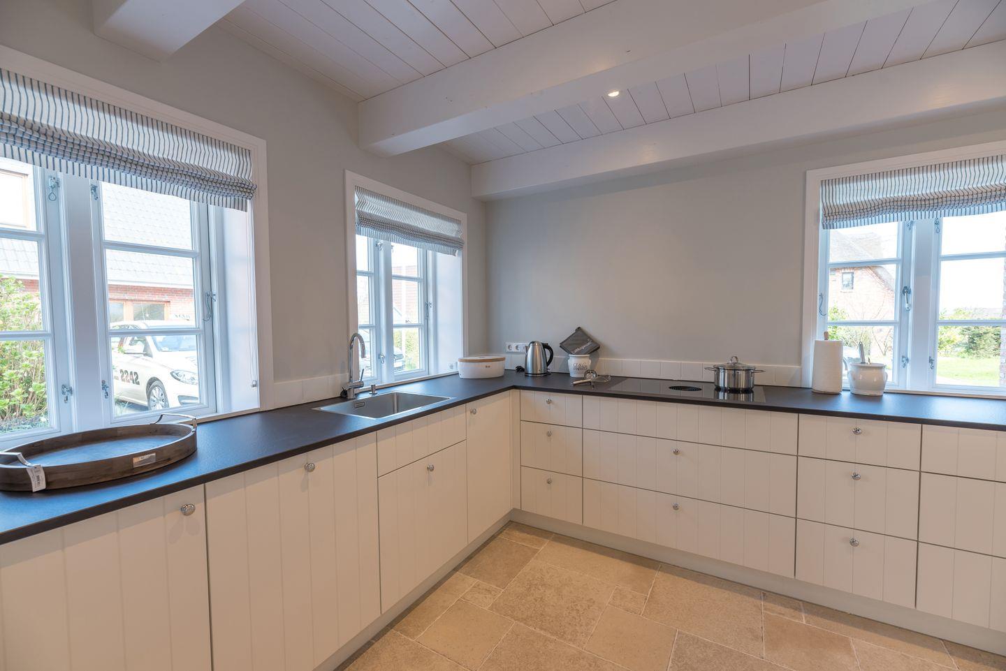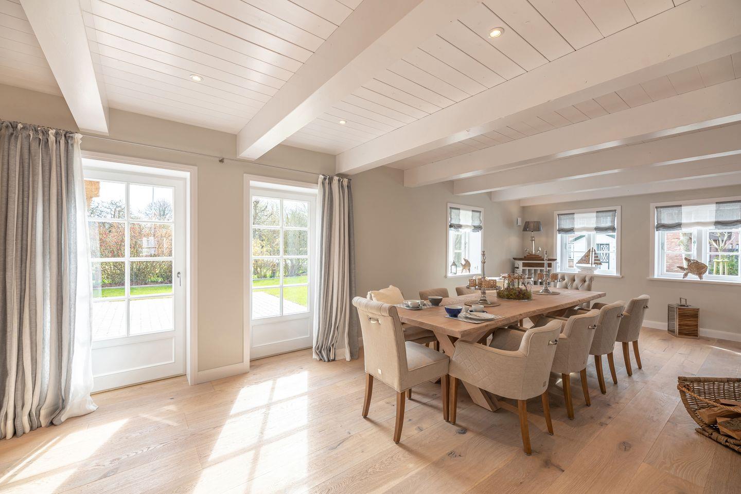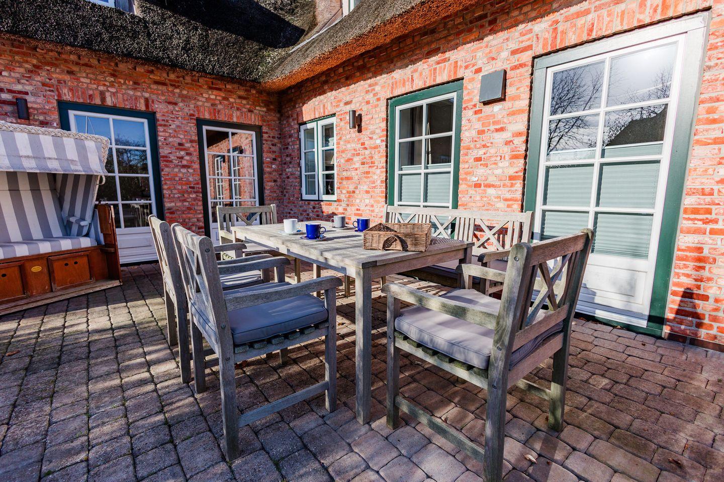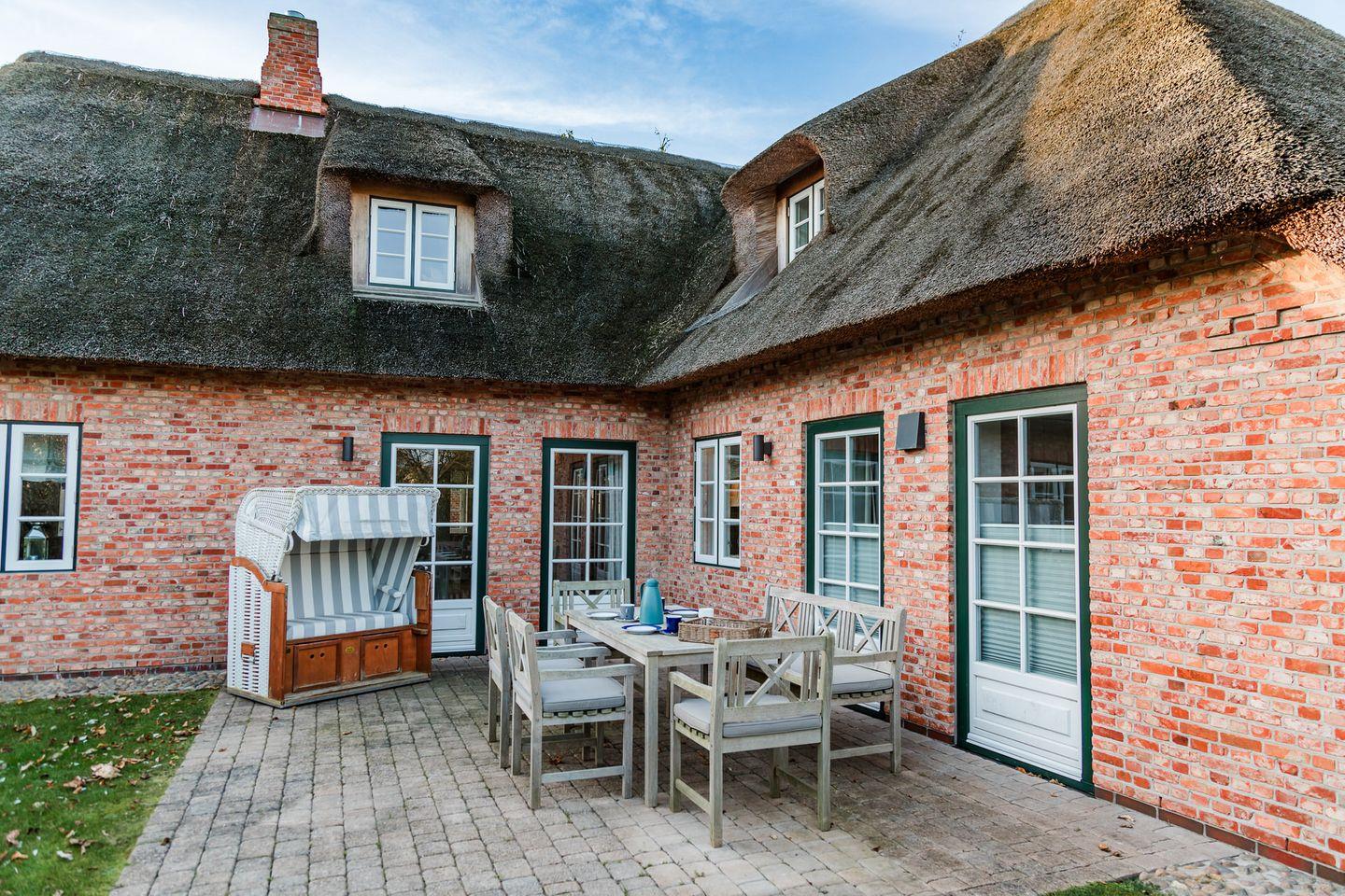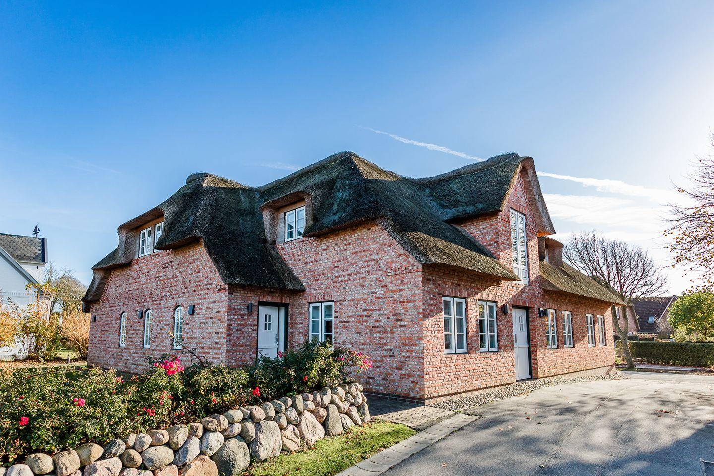 Das reetgedeckte Ferienhaus Ferhaaling - zu deutsch: Erholung - verfügt über 4 Schlafzimmer, 3 Bäder und 1 Gäste-WC und bietet somit komfortabel Platz für bis zu 8 Personen zuzüglich einer Kleinkinderaufbettung. Auch bis zu 2 Hunde sind hier herzlich willkommen.
