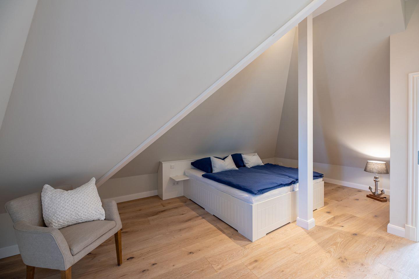 Im Dachgeschoss steht Ihnen ein weiteres Schlafzimmer mit Doppelbett zur Verfügung.