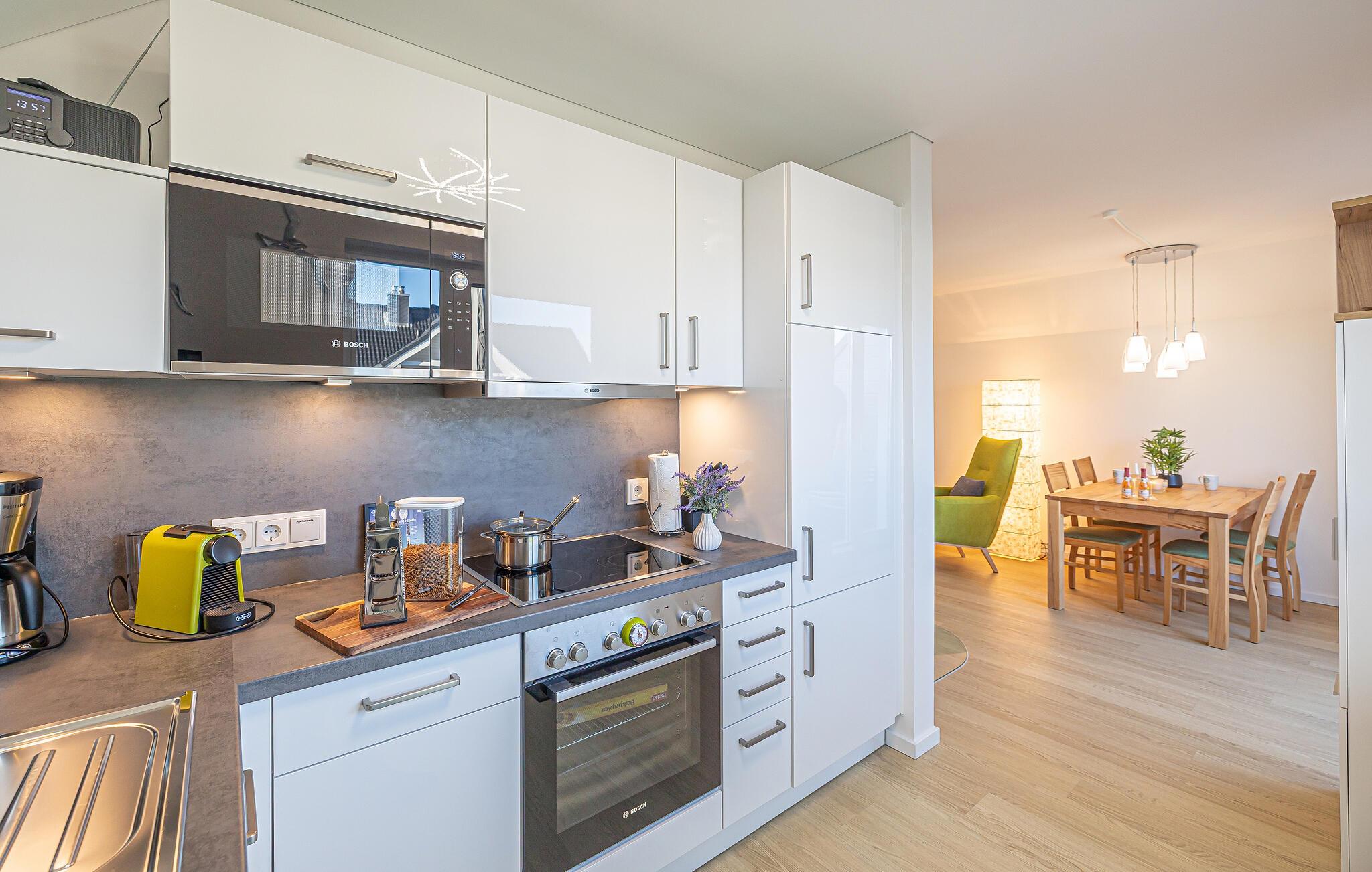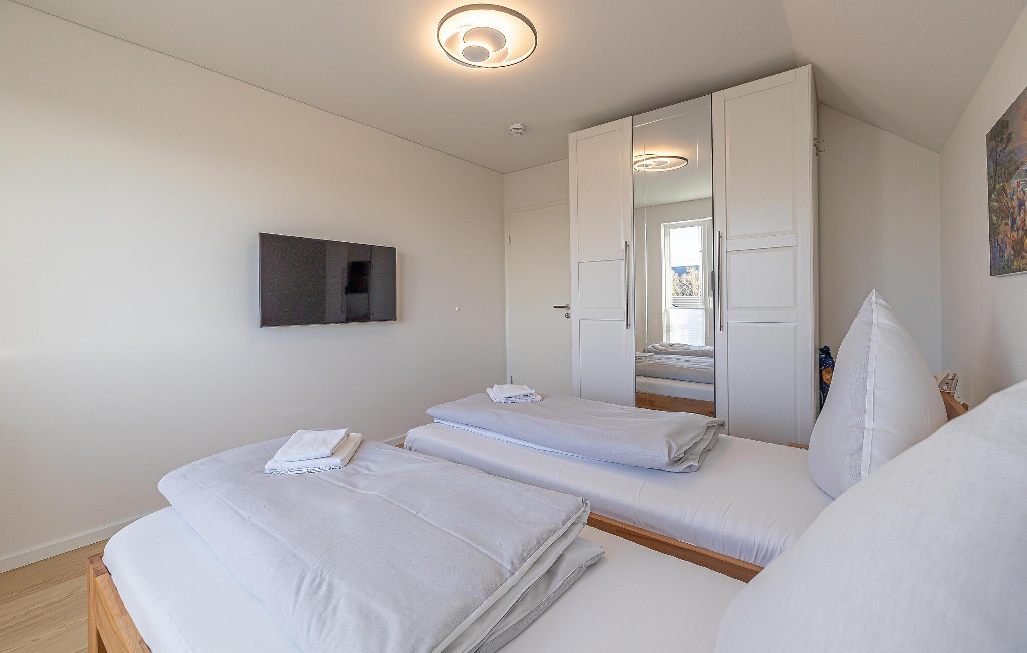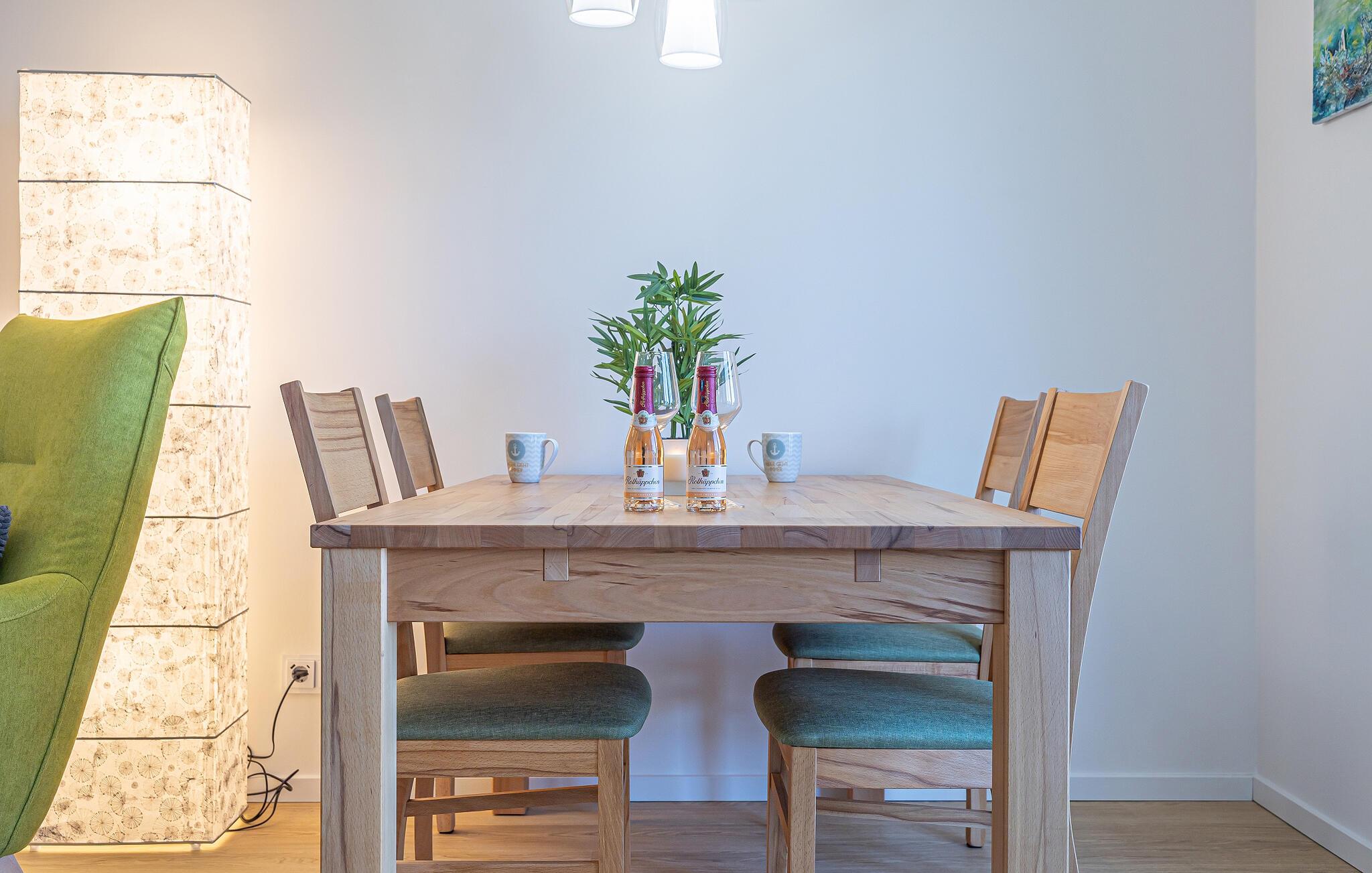 Oplev denne stilfulde og hyggelige lejlighed med en førsteklasses beliggenhed nær Weidenfelder Strand, ideel til en afslappende ferie med et godt udvalg af aktiviteter for hele familien. Nyd den harmoniske atmosfære i de moderne værelser, der kombinerer komfort og hygge. Efter en begivenhedsrig dag kan I slappe af i den behagelige sofa og se en god film med vennerne. Afslut aftenen fredeligt i den beroligende infrarøde sauna eller ved den varmende pejs.