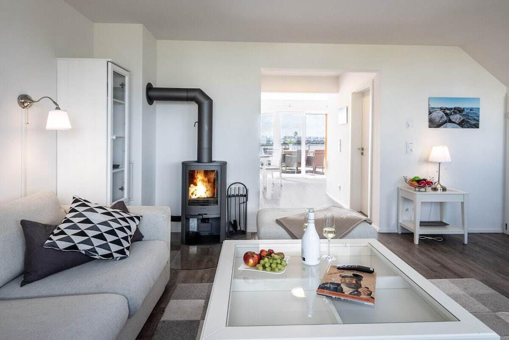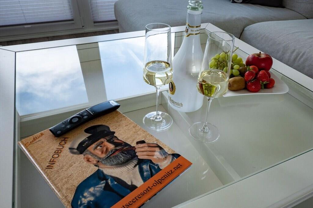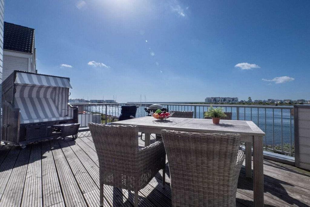Direkt an der Ostsee entsteht in einer der schönsten Urlaubsregionen Deutschlands, im Nordosten Schleswig-Holsteins direkt zwischen Schleimündung und Ostsee ein neues, einzigartiges Ferienresort der Extraklasse, das durch seine Vielfalt besticht.Das Ostseeresort Olpenitz soll Nordeuropas größtes maritimies Ferienresort werden. Eingebettet in eine unvergleichliche Natur, ausgestattet mit allem, was den Aufenthalt das ganze Jahr über angenehm und abwechslungsreich macht: eine große Marina, Restaurants, Cafés, Shops und ein Freizeitangebot, das keine Wünsche für eine neue Erlebnis-Urlaubs-Welt offen läßt. Umgeben von Wasser – auf einer schmalen Landzunge zwischen dem Ostseefjord Schlei und der Marina des OstseeResort Olpenitz gelegen, in unmittelbarer Nähe zum kleinen Strand– überzeugt dieses Ferienobjekt mit seiner Großzügigkeit, einem traumhaften Wasserblick und ganztags Sonne auf dem gen Süden ausgerichtetem Balkon. Bei diesem Ferienobjekt handelt es sich um eine Maisonette Wohnung im ersten und zweiten Obergeschoss. Die Ferienwohnung Ostseeflair by Seeblick Ferien ORO betritt man über eine Außentreppe, von hier könnte man sofort auf den ersten Südbalkon (ca.25 m²) gelangen, der mit einem Strandkorb, Teak-Deckchair und weiteren gemütlichen Möbeln zum Relaxen auf Sie wartet. Der Eingangsbereich führt in den Wohn-und Essbereich mit zusätzlichem Duschbad und WC. Auf der zweiten Ebene befindet sich Ihr Badezimmer, dies lässt Wellnessherzen höherschlagen, denn es verfügt über eine bodengleiche XXL Walk-In-Dusche, eine Whirlpool-Badewanne, eine Sauna (Infrarotkabine) mit Farblichttherapie und ein Radio mit Bluetooth. An der Wellnessoase vorbei, folgen zwei gut gestaltete Schlafzimmer mit Platz für fünf Erwachsene und einen traumhaften Blick aufs Wasser. Das Masterbedroom verfügt über ein Doppelbett (1,80 x 2,00) mit zusätzlichem 40 Zoll Smart TV, Blick auf die Marina, während ein Etagenbett (unten1,40 x 2,00 max.180kg), (oben 90x200 max. 75 kg) für 3 Personen im zweiten Schlafzimmer mit Blick auf die Schlei, auf Sie wartet. Im Fokus steht aber der perfekt umgesetzte lichtdurchflutete Wohn- und Essbereich mit Holz befeuertem Kaminofen, bodentiefen Panoramafenstern, welcher Loftartig gestaltet ist, sodass alle Räume fließend ineinander übergehen und sich der Wohnbereich mit der Natur verbindet. Die Integration der offenen Küche mit hervorragender Ausstattung und funktionalem Design, steht dem gemütlichen Beisammensein auch beim Zubereiten von allerlei Köstlichkeiten nichts im Wege. Die Wasserkulisse vor dem Essbereich mit 180 Grad Panoramablick auf den gesamten Hafen und die Ostsee ist hierbei zum Greifen nah – das ist Ostseeflair. Den zweiten Nordbalkon (ca. 8m²) betritt man über den Wohnbereich, hier können es sich unsere Gäste auf einer zusätzlichen Bestuhlung gemütlich machen und bei einem Sundowner mit Abendsonne den Tag ausklingen lassen. Bei dieser Wohnung sind spektakuläre Sonnenlichtspiele durch die zwei Balkone in Süd- und Nordausrichtung zu erwarten. Der Einrichtungsstil entspricht der exklusiven Lage der Ferienwohnung: Landhausstil gepaart mit klaren Farben und Formen versprechen Ruhe und Rückzug, während einzelne Farbakzente für erfrischende Leichtigkeit sorgen. Die gesamte Ferienwohnung lässt sich über die Fußbodenheizung einfach temperieren und bietet dank des Kaminofens und der Sauna das ganze Jahr über eine angenehme Wärme und eine gemütlich-wohlige Atmosphäre. Für Unterhaltung sorgen im Wohnbereich ein 55 Zoll Smart TV mit Bluetooth und Samsung Soundbar, eine Playstation, Blu-ray-Player, ein separates Internet Radio sowie eine Spielesammlung. Der Weber Elektrogrill rundet die hochwertige Ausstattung ab. Sollten Sie das Los gezogen haben im Urlaub arbeiten zu müssen, ist das auf keinen Fall eine Niete. In dieser Unterkunft befindet sich ein portabler Schreibtisch, den Sie nach Ihren Vorlieben, nach der besten Aussicht oder Sonnenausrichtung, platzieren können. Darüber hinaus verfügt die Wohnung über einen Pkw-Stellplatz mit Elektroladesäule für Ihr Elektroauto direkt am Haus und einen abschließbaren Fahrradschuppen. Das laden an der Wallbox kann über die Kreditkarte abgerechnet werden, 1 kWh = 59 Cent. Solch eine Lage gibt es in Deutschland an der gesamten Ostseeküste wohl kaum noch ein zweites Mal! Wer einen ruhigen naturnahen Urlaub liebt, dürfte hier sicherlich “seine schönste Zeit des Jahres” verbringen können, auch wenn Umfeld und Infrastrukur im Ostseeresort Olpenitz momentan noch einem ständigen Wandel mit Bautätigkeit unterliegt. Dies ist bei der Preisberechnung bereits berücksichtigt und stellt keinen Mangel dar. Haustiere sind in dieser Fewo nicht gestattet. Unsere Fewo ist ein Nichtraucherobjekt. Kostenloses Highspeed WLAN über Glasfaser Ein Kinderreisebett und ein Kinderhochstuhl stehen für unsere kleinen Gäste bereit. Bettwäsche/ Handtücher können selbst mitgebracht oder aber in Form von Wäschepaketen ca. 21,00EURO pro Person von unserer Agentur ausgeliehen werden. Die Betten wären dann bei Anreise bezogen. Die Wäschepakete müssen Sie separat bestellen. Heizungs-, Strom- und Wasserkosten sind im Mietpreis der Fewo Ostseeflair by Seeblick Ferien inbegriffen. Eine Kaution in Höhe von 300,-EURO sind bei Anreise zu hinterlegen, diese werden sofort bei Check Out erstattet. Bei Fragen oder Problemen vor Ort stehen wir Ihnen gern zur Verfügung. Vor Ort ist außerdem unser Gästeservice, der Ihnen gern weiterhilft und mit Ihnen, ganz im Gegensatz zu einigen Mitanbietern, gemeinsam in die Wohnung fährt und Ihnen alles zeigt. Bei uns geniesen Sie die exklusivität eines persönlichen Check In und Out in Ihrer gebuchten Ferienwohnung. Es gelten verschiedene Preise und Mindestaufenthalte zu verschiedenen Saisonzeiten, welche technisch bedingt von der angegebenen Nächteanzahl abweichen können. Last Minute Anfragen und Kurzaufenthalte bis 2 Nächte, funktionieren nur direkt. Bitt