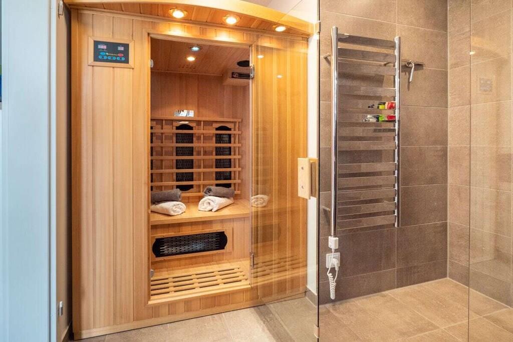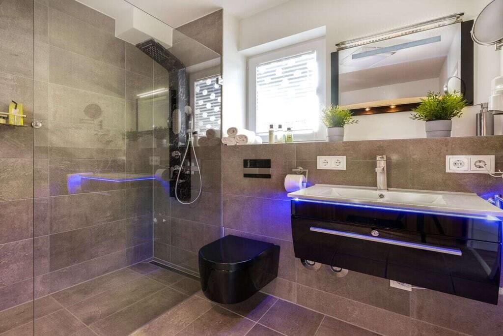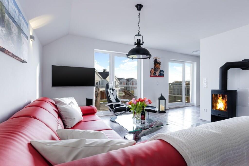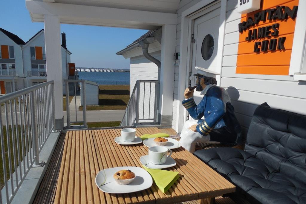 Direkt vom Eigentümer. Idyllisch auf der Kapitäns-Halbinsel des Ostsee Resort Olpenitz, in der Kapitänsstraße gelegen, bietet unsere 3 Zimmer “Fewo Kapitän James Cook Olpenitz” von allen "Sternhäusern“ hier den mit Abstand schönsten Blick und die beste Lage, einen Anlaufpunkt für Erholungsurlaub auf 77m² in der ersten Etage. Die Fewo Käpt`n James Cook Olpenitz betritt man über eine Außentreppe zum überdachten ersten Balkon (10m²), dieser ermöglicht auch bei Regen, den Aufenthalt an der frischen Luft. Der Eingangsbereich führt vorbei an einem schönen Badezimmer, dies lässt Wellnessherzen höher schlagen, denn es verfügt über eine ebenerdig geflieste Walk In Dusche und über eine Sauna (Infrarotkabine) mit Farbblichttherapie. Auf der anderen Seite folgen zwei geschmackvoll eingerichtete Schlafzimmer mit Platz für vier Erwachsene und einen traumhaften Blick auf`s Wasser. Das Masterbedroom verfügt über ein Wasserbett mit mittlerer Beruhigung (1,80 x 2,20), während ein Boxspringbett (1,80 x 2,00) im zweiten Schlafzimmer, bei mit zusätzlichem Flat TV, auf Sie wartet. Im Fokus steht aber der perfekt umgesetzte lichtdurchflutete Wohn- und Essbereich mit Holz befeuertem Kaminofen, bodentiefen Fenstern, durch die sich der Wohnbereich mit der Natur verbindet. Die Integration der offenen Küche mit hervorragender Ausstattung und funktionalem Design, steht dem gemütlichen Beisammensein,auch beim zubereiten von allerlei Köstlichkeiten nichts, im Wege. Der runde Kaminofen zwischen Wohnzimmer und Essbereich verleiht dem Raum eine besondere Atmosphäre. Vor allem in den kalten Wintertagen verbreitet der Ofen ein kuscheliges Wohlfühlambiente mit angenehmer Wärme. Den großzügigen zweiten Balkon (Südbalkon14m²) betritt man über den Wohnbereich. Hier können es sich unsere Gäste auf einer bequemem Bestuhlung gemütlich machen und die Sonne so zu jeder Tageszeit genießen oder sich etwas leckeres auf dem Elektrogrill zubereiten. Bei dieser Wohnung sind spektakuläre Sonnenlichtspiele durch die zwei Balkone in Süd- und Westausrichtung zu erwarten. Der Einrichtungsstil entspricht der exklusiven Lage der Ferienwohnung: klare Farben und Formen, sowie der Einsatz natürlicher Materialien, versprechen Ruhe und Rückzug, während einzelne Farbakzente für erfrischende Leichtigkeit sorgen. Die gesamte Ferienwohnung lässt sich über die Fußbodenheizung einfach temperieren und bietet dank des Kaminofens und der Sauna das ganze Jahr über eine angenehme Wärme und eine gemütlich-wohlige Atmosphäre. Für Unterhaltung sorgen im Wohnbereich eine Musik-Anlage mit Bluetooth, Wlan, CD, SD und USB Slot, sowie eine Spielesammlung und Bücher. Darüber hinaus verfügt die Wohnung über einen Pkw-Stellplatz mit Elektroladesäule direkt am Haus. Bettwäsche/ Handtücher können selbst mitgebracht oder aber in Form von Wäschepaketen (ca.EURO 21,-p.Paket) ausgeliehen werden. Die Betten wären dann bei Anreise bezogen. Der Buchungskalender hier auf Traum Ferienwohnungen ist immer TOP Aktuell. Buchungslücken sind buchbar (auch nur eine Übernachtung). Schreiben Sie uns unverbindlich an.