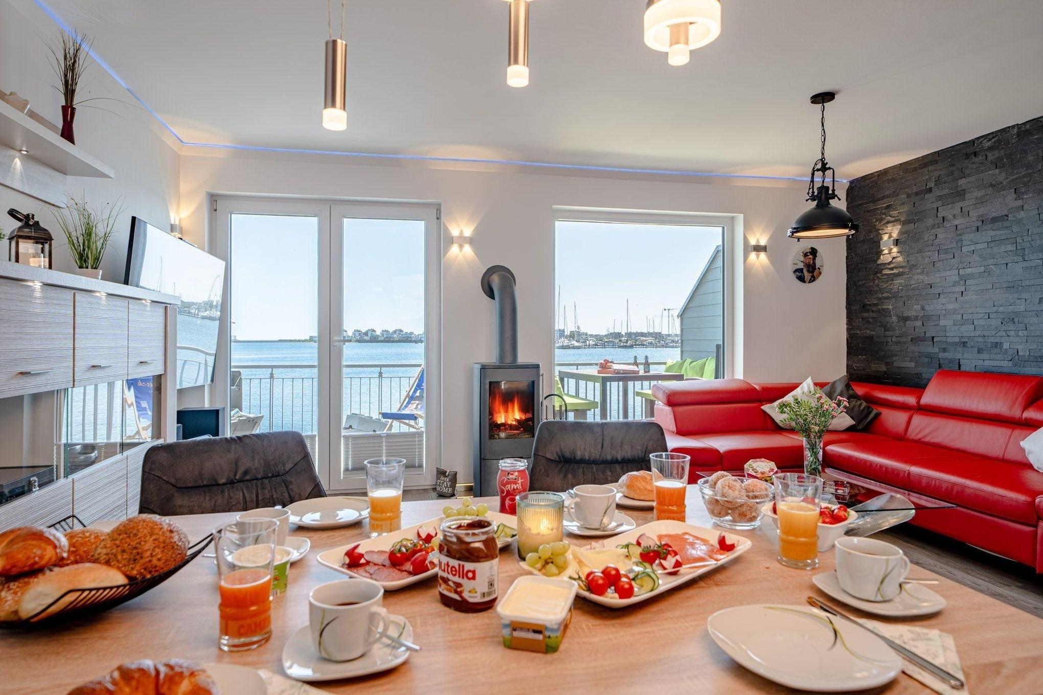Verbringen Sie behagliche Abende vor dem knisternden Kamin im hellen Wohnzimmer auf dem Echtledersofa mit Schlaffunktion. Schalten Sie die Ambiente Beleuchtung ein und lassen Sie sich von dem Blick auf das Hafenpanorama verzaubern.