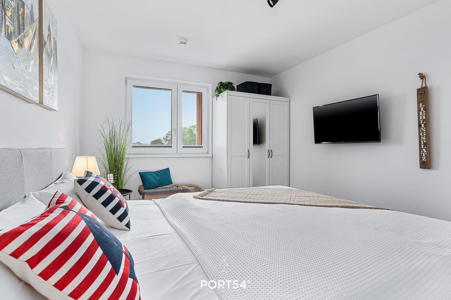Diese exklusive Ferienwohnung „Hafenmelodie“ liegt nur wenige Meter vom Wasser entfernt. Auf knapp 51 m² bietet sie Dir ein Schlafzimmer mit gemütlichem Doppelbett, einen offenen Wohn- und Essbereich, eine Küche, einen TV sowie ein gemütliches Schlafsofa. Das großzügige Badezimmer verfügt über eine ebenerdige Dusche. Das Highlight ist der Balkon mit Wasserblick, auf dem Du die Sonnenaufgänge genießen kannst. Ein kostenfreier Parkplatz befindet sich direkt vor dem Haus.