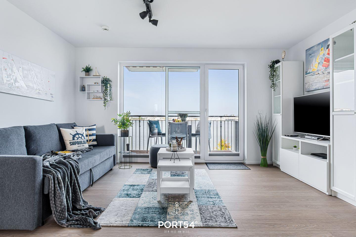 Hafenmelodie - 1. Reihe am Wasser, 1. Stock, Hafenblick, Balkon, Duschbad