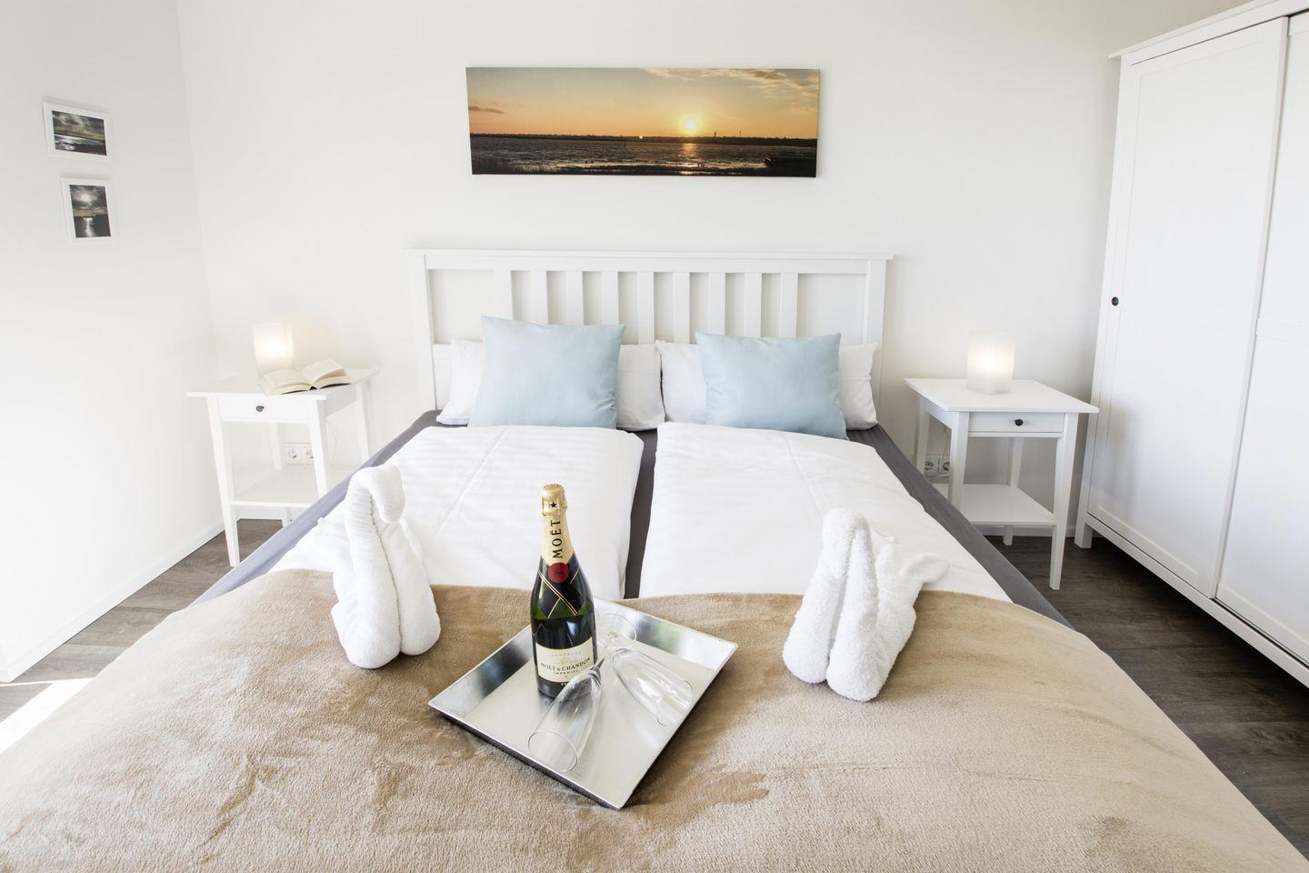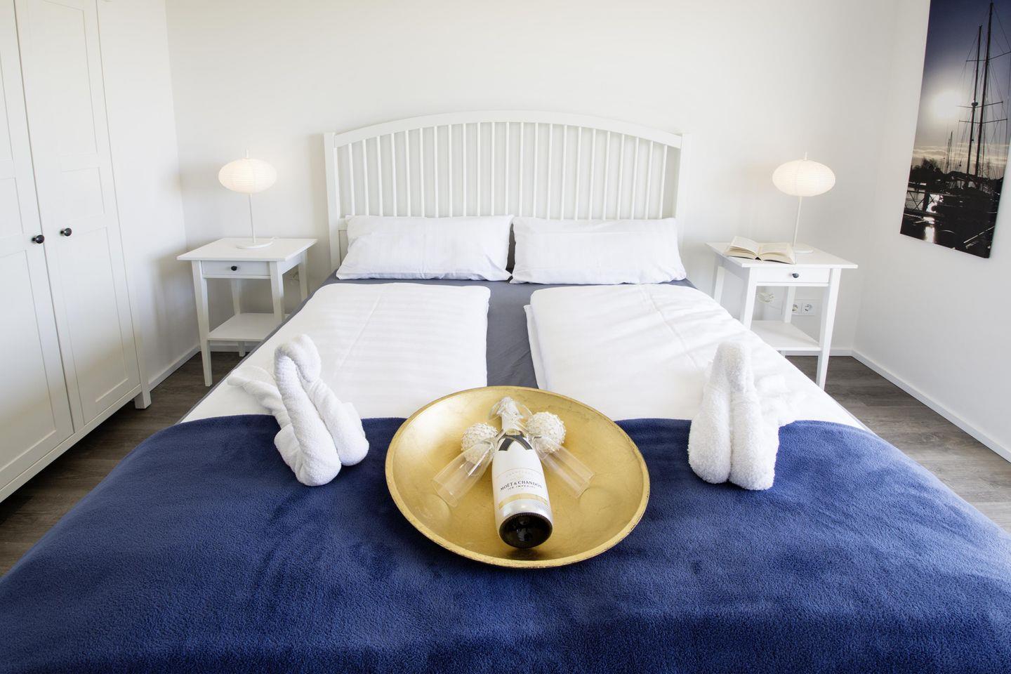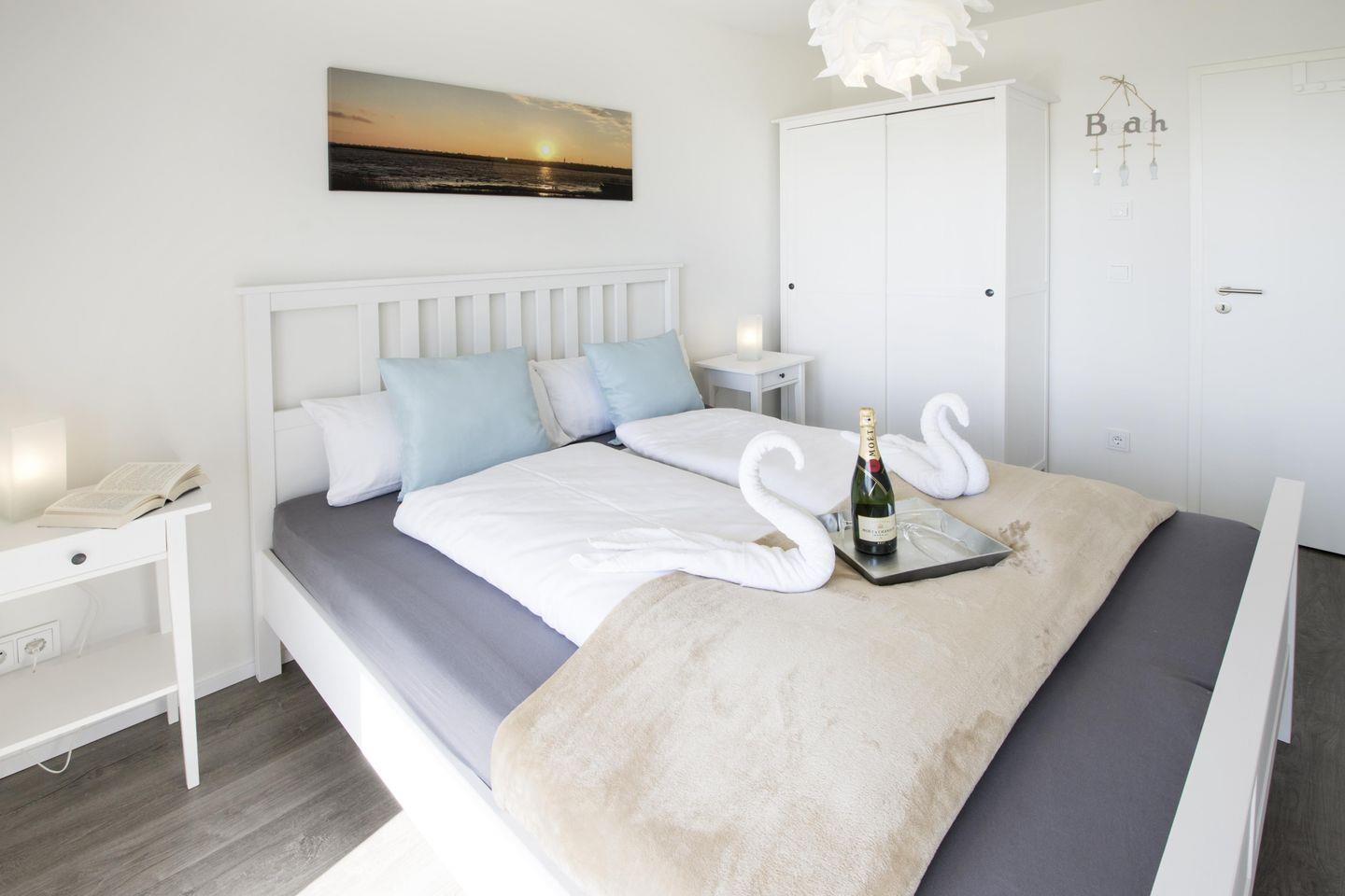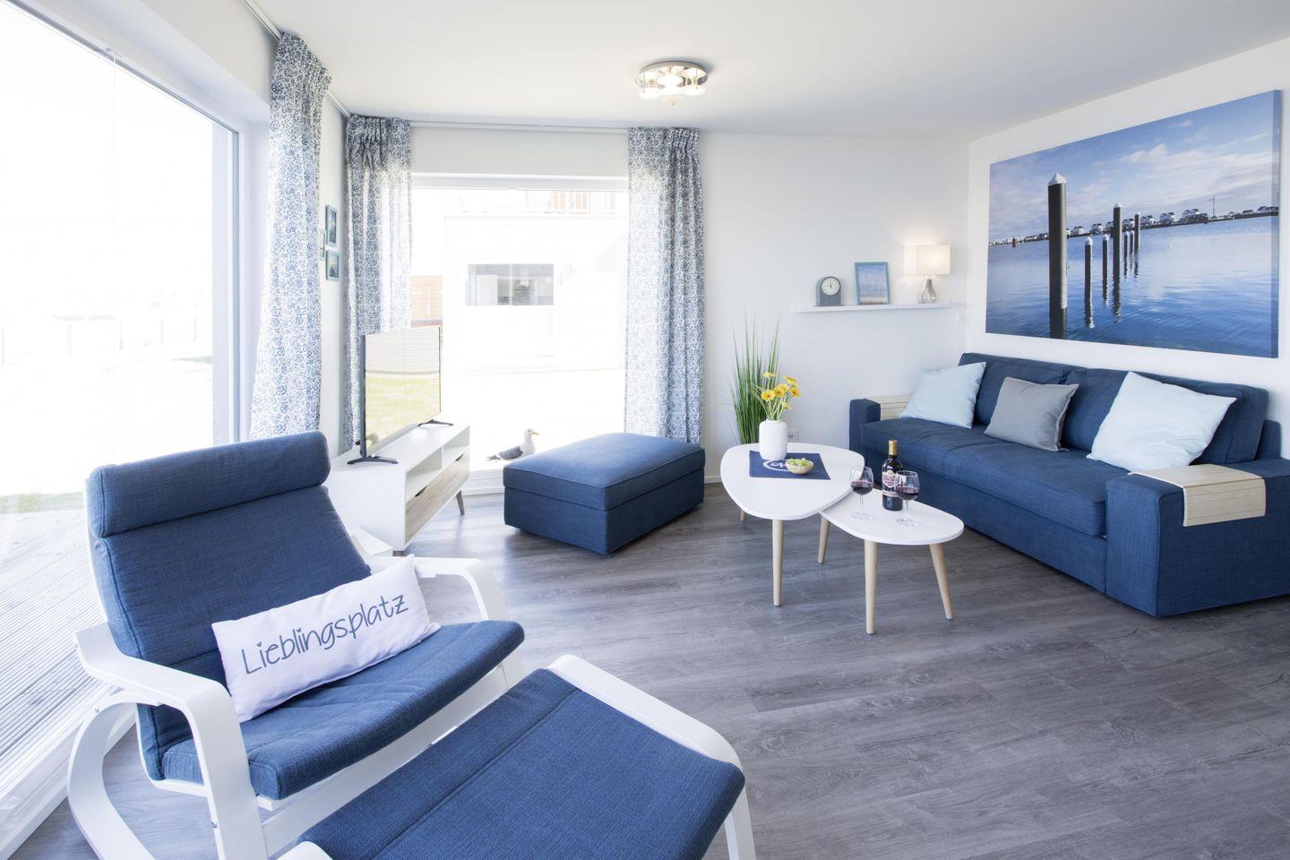 In dieser modernen und gemütlich eingerichteten Wohnung mit maritimem Ambiente fühlst Du Dich schnell wie Zuhause! Mit zwei Schlafzimmern und einem Wohnzimmer mit Schlafcouch bietet sie auf 83 m² reichlich Platz zur Entfaltung für bis zu 6 Personen. In der kalten Jahreszeit erholst Du Dich nach einem Spaziergang in der Infrarot-Sauna und in der Whirlpool-Badewanne. Eine separate Dusche ist ebenfalls vorhanden. Auf der Terrasse mit direktem Meerblick kannst Du schöne Stunden verbringen.