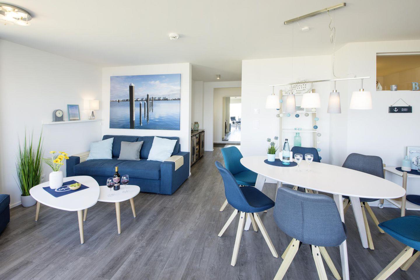 Herzlich willkommen in dieser modernen und liebevoll gestalteten Wohnung mit maritimem Ambiente – Deinem Zuhause auf Zeit! Mit großzügigen 83 m², zwei Schlafzimmern und einem Wohnzimmer inklusive Schlafcouch bietet diese Unterkunft Platz für bis zu 6 Personen und verspricht ein unvergleichliches Urlaubserlebnis.