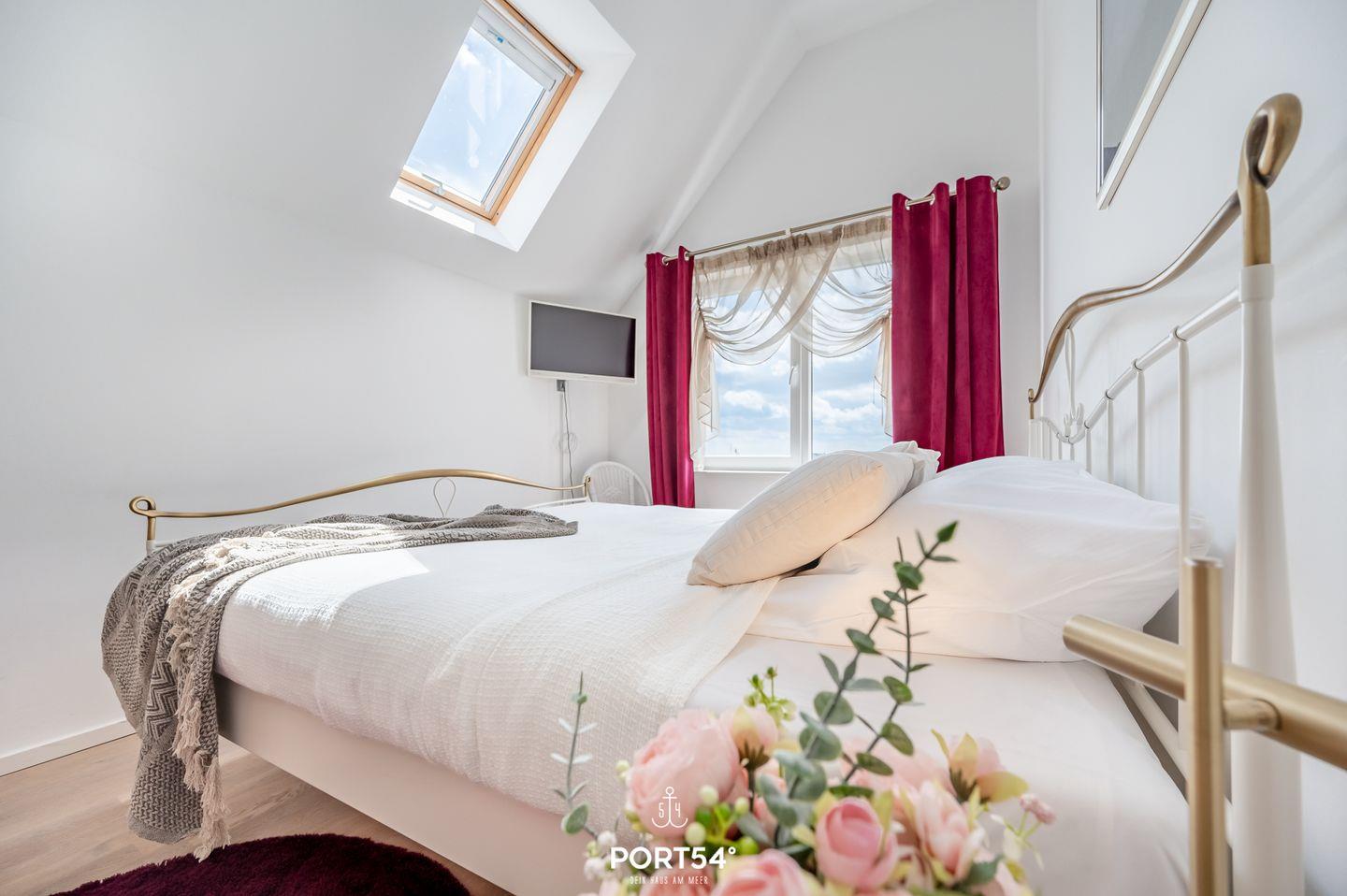 Im zweiten Obergeschoss erwarten Dich zwei Schlafzimmer. Eines ist mit einem großzügigen Doppelbett (180x200 cm) ausgestattet, das andere verfügt über zwei komfortable Einzelbetten (je 90x200 cm). Gönne Dir ein entspannendes Bad in der Whirlwanne mit Blick auf das Meer und genieße diesen besonderen Moment für alle Sinne. Das Badezimmer bietet Dir zudem eine geräumige Dusche sowie eine Infrarot-Sauna für ein rundum gelungenes Wellnesserlebnis. Zwei weitere Schlafplätze stehen Dir auf der bequemen Schlafcouch im Wohnbereich zur Verfügung.