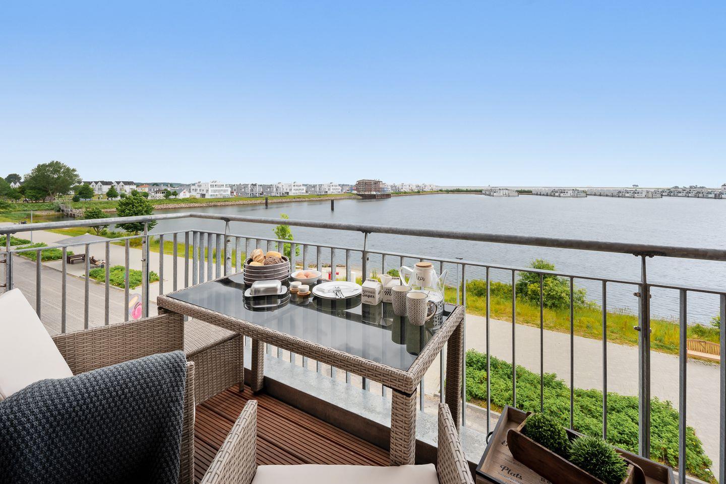 Hafen & Meer - Balkon, 1. Reihe am Wasser, 2.OG, PKW Stellplatz, E-Ladesäule