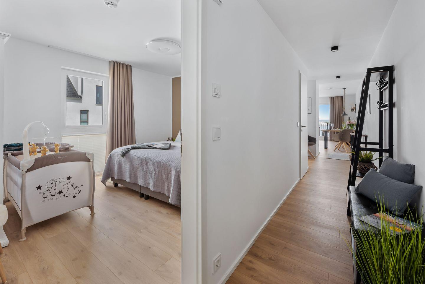 Da es sich um eine Eckwohnung im 2. Obergeschoss handelt, kannst Du die Weite über die schwimmenden Häuser und den Ostseefjord Schlei uneingeschränkt genießen.