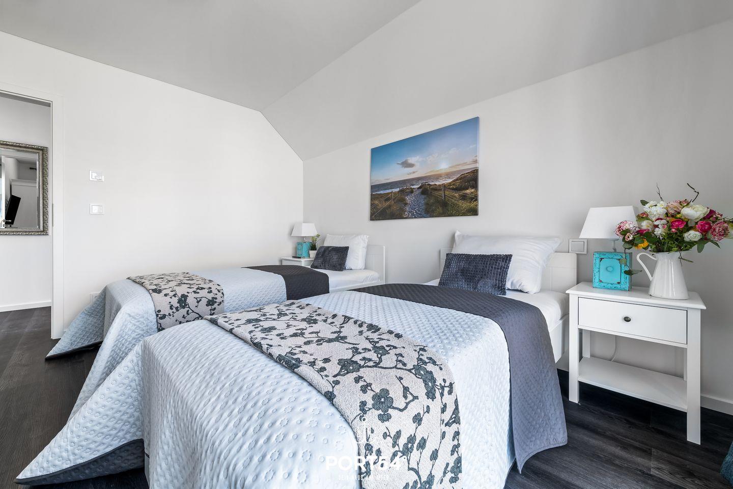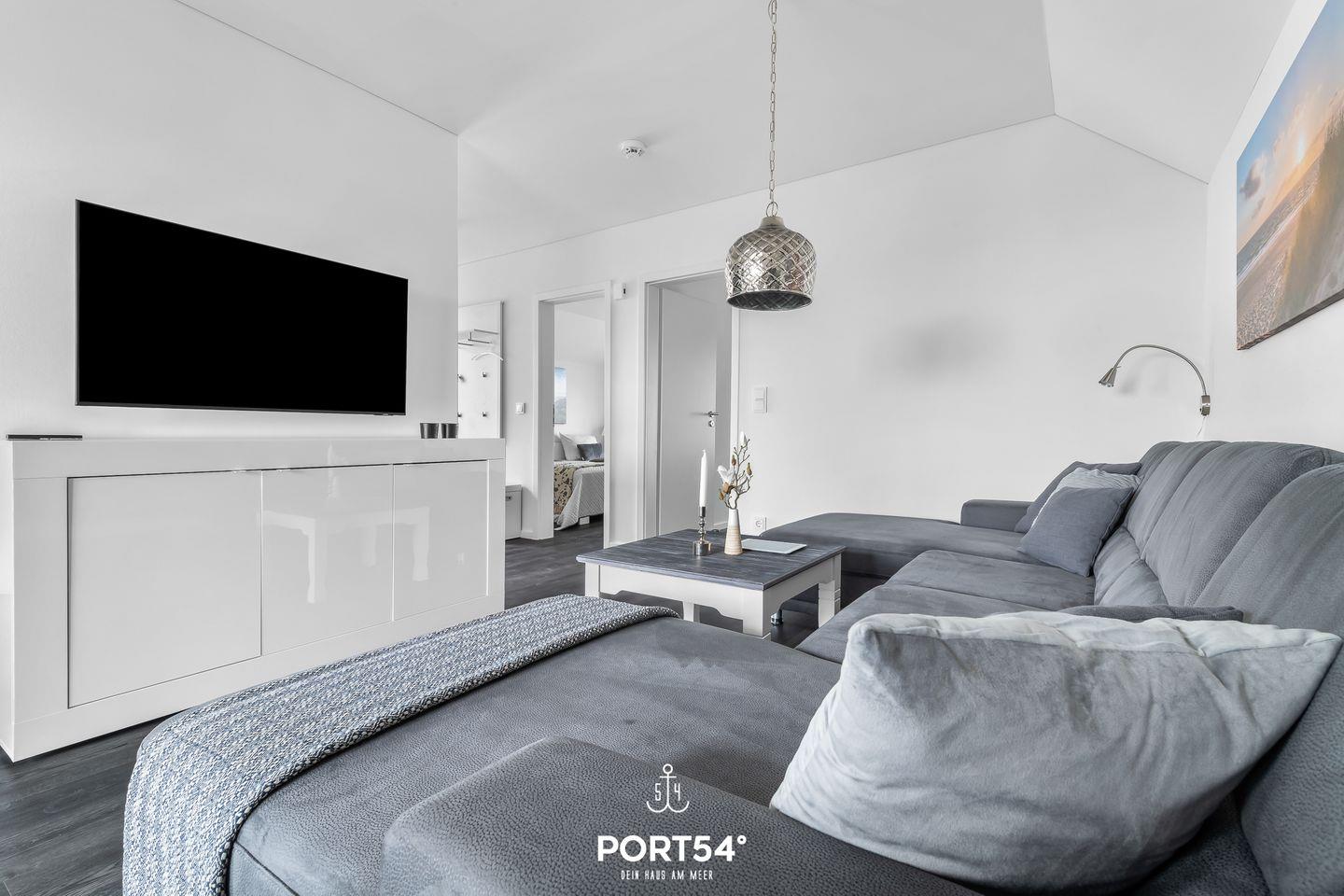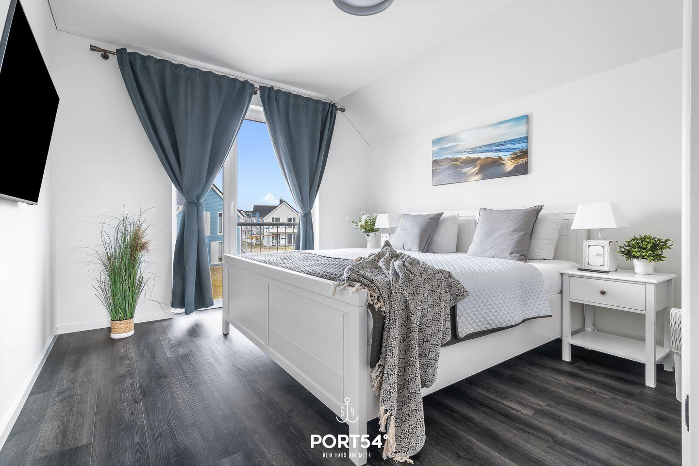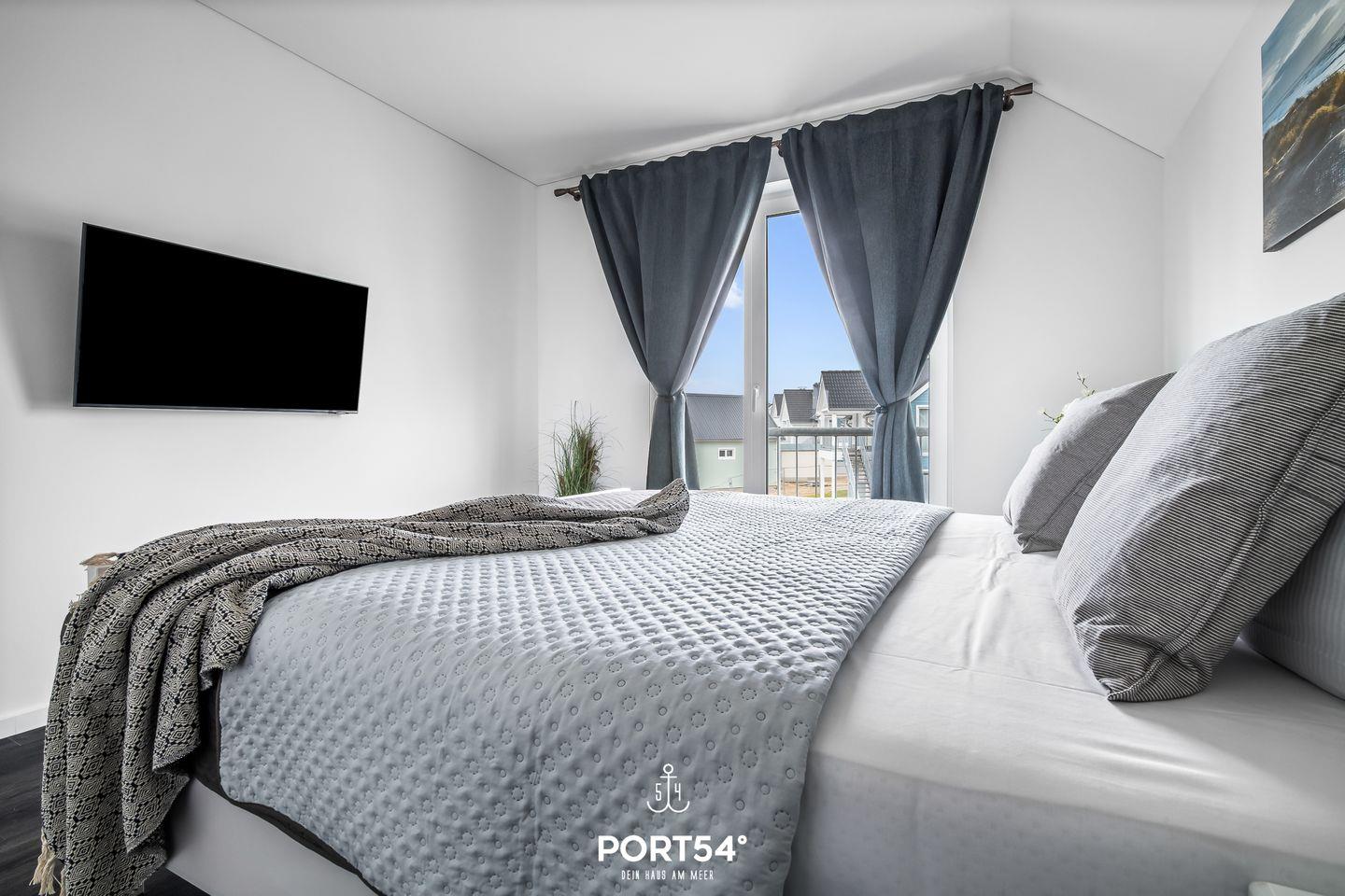 Dir stehen zwei Schlafzimmer zur Verfügung, eines mit einem Doppelbett (180 × 200 cm) und eines mit zwei Einzelbetten (90 × 200 cm). Für erholsame Nächte sorgen die Verdunklungsmöglichkeiten vor den Fenstern, sodass Ausschlafen garantiert ist. Wenn Du danach noch liegen bleiben möchtest, kannst Du entspannt vom Bett aus fernsehen.