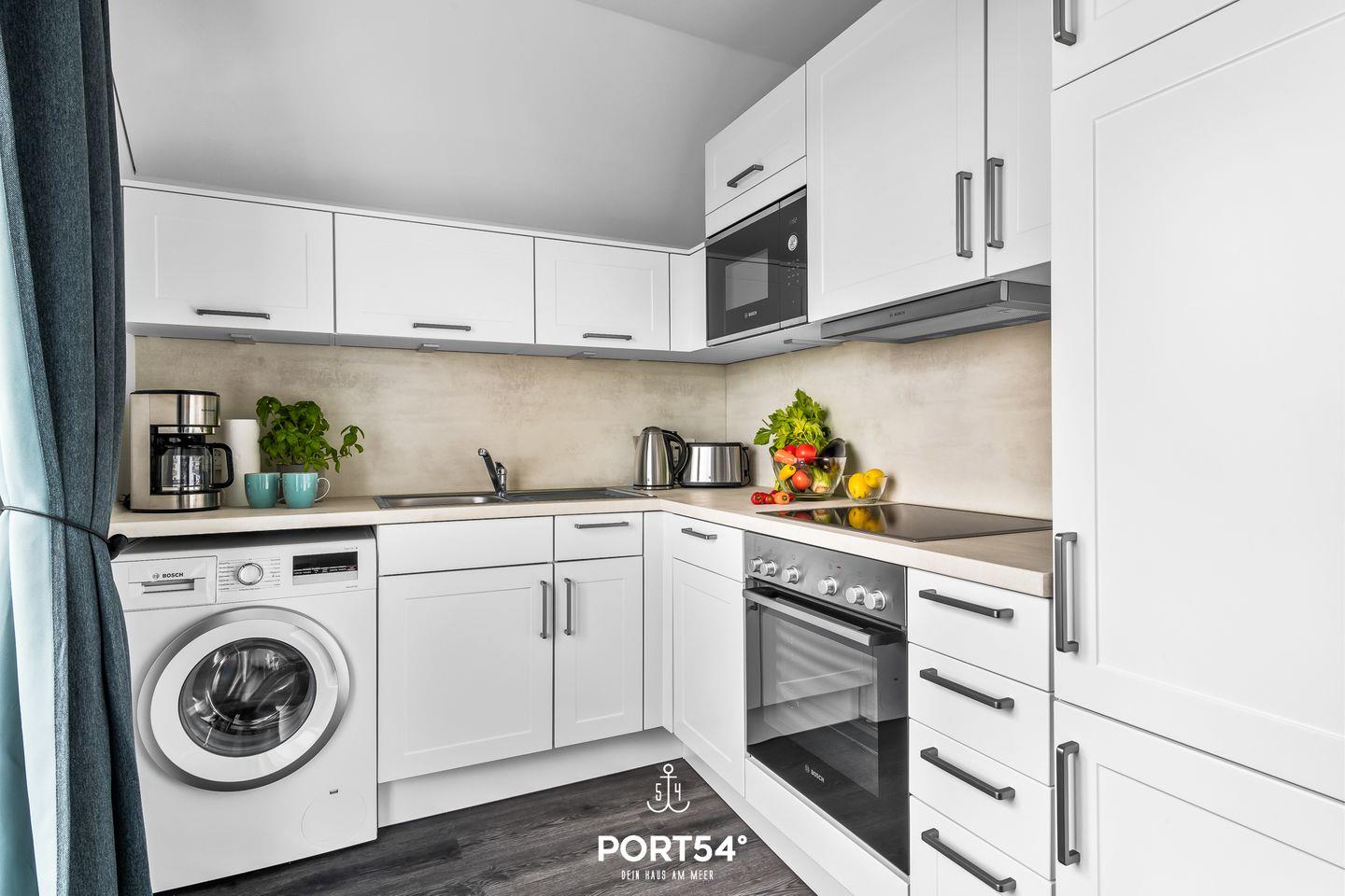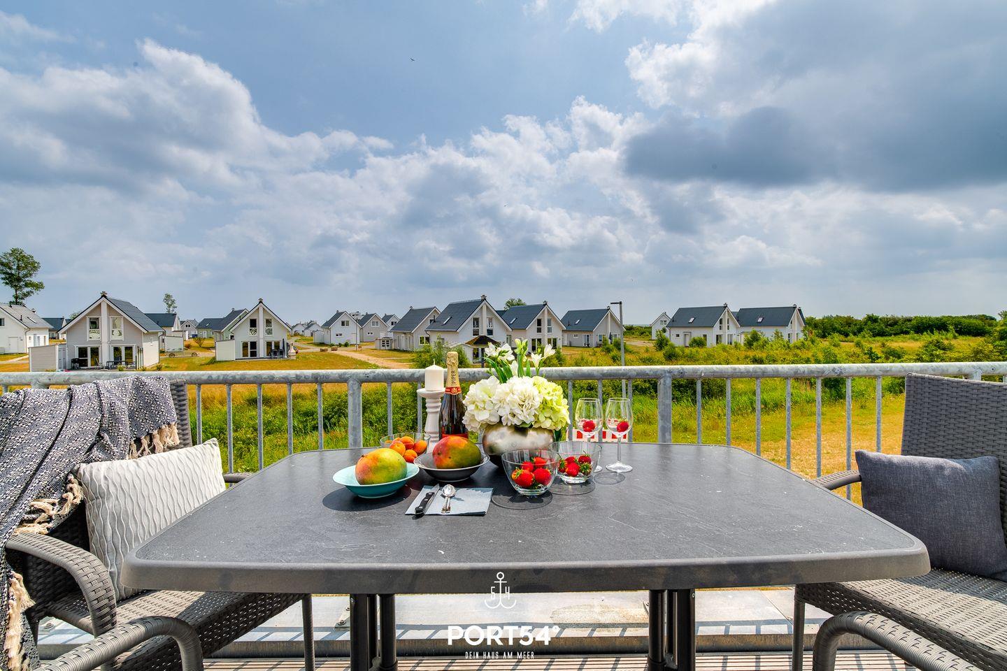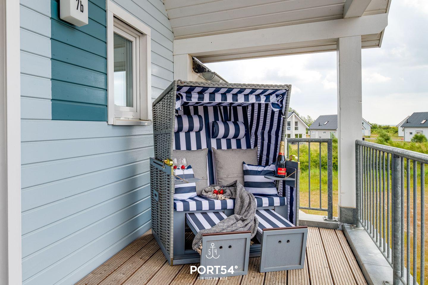 An warmen Tagen lädt der möblierte Balkon zu schönen Sonnenstunden ein. Ein Elektrogrill steht Dir ebenfalls zur Verfügung. Im Strandkorb kannst Du bei einem Glas Wein den Abend ausklingen lassen.