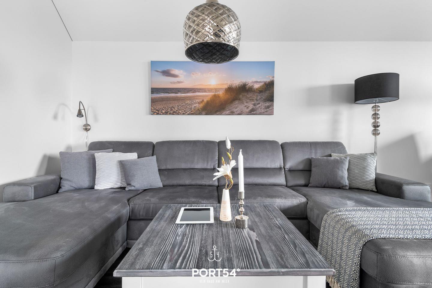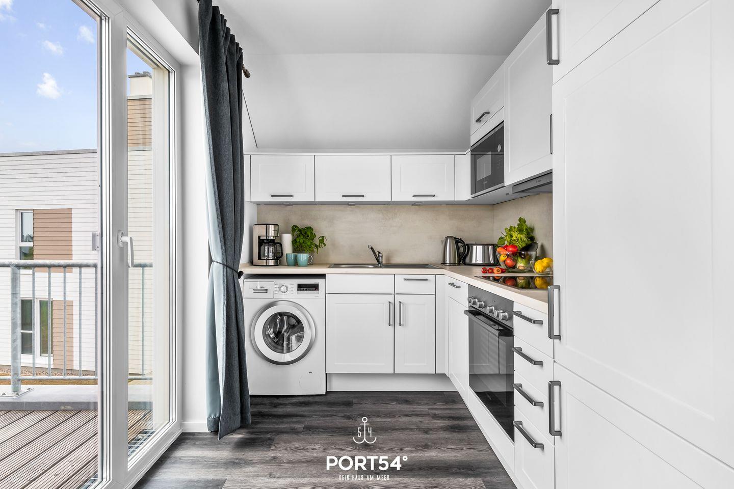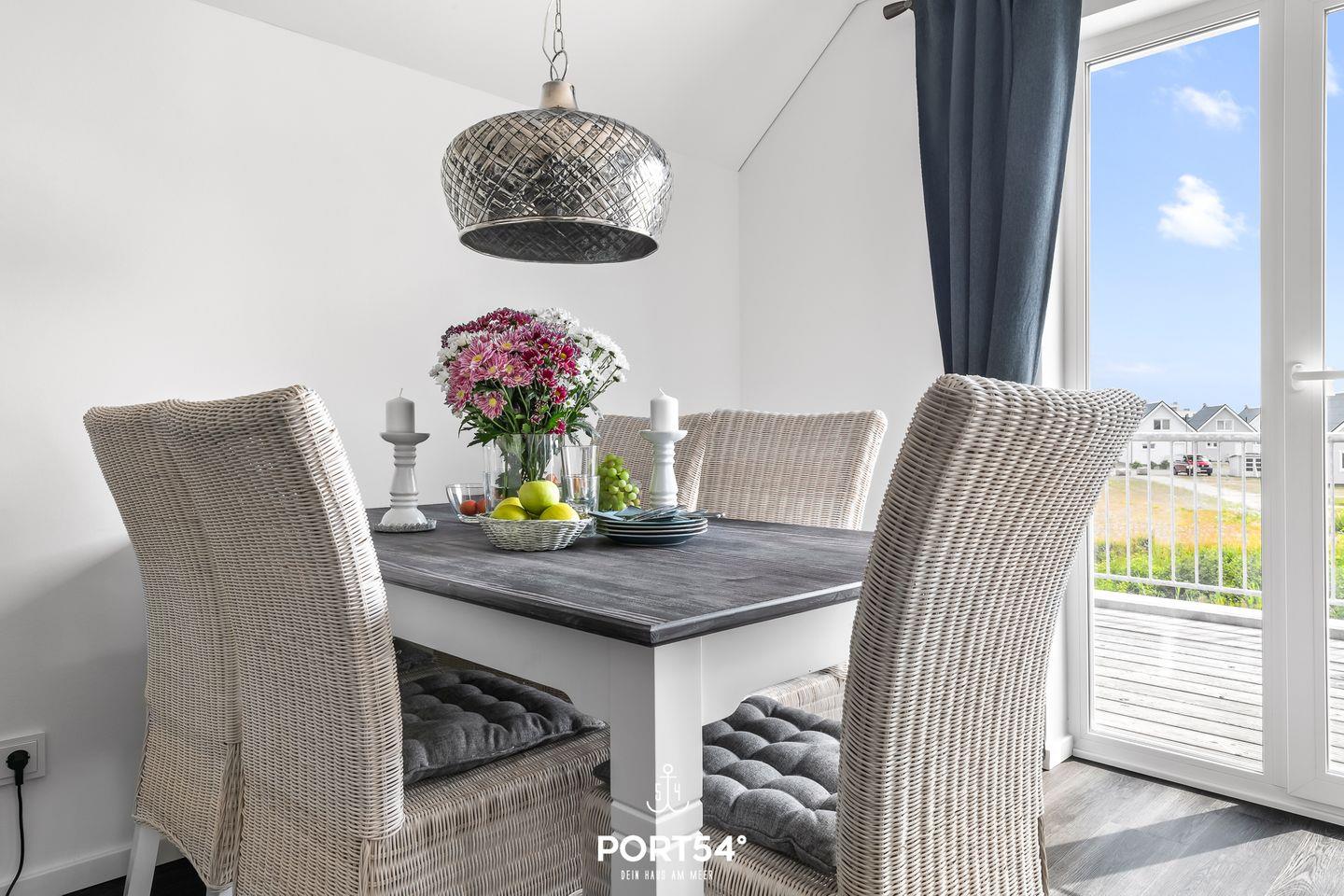 An warmen Tagen lädt der möblierte Balkon zu schönen Sonnenstunden ein. Ein Elektrogrill steht Dir ebenfalls zur Verfügung. Im Strandkorb kannst Du bei einem Glas Wein den Abend ausklingen lassen.