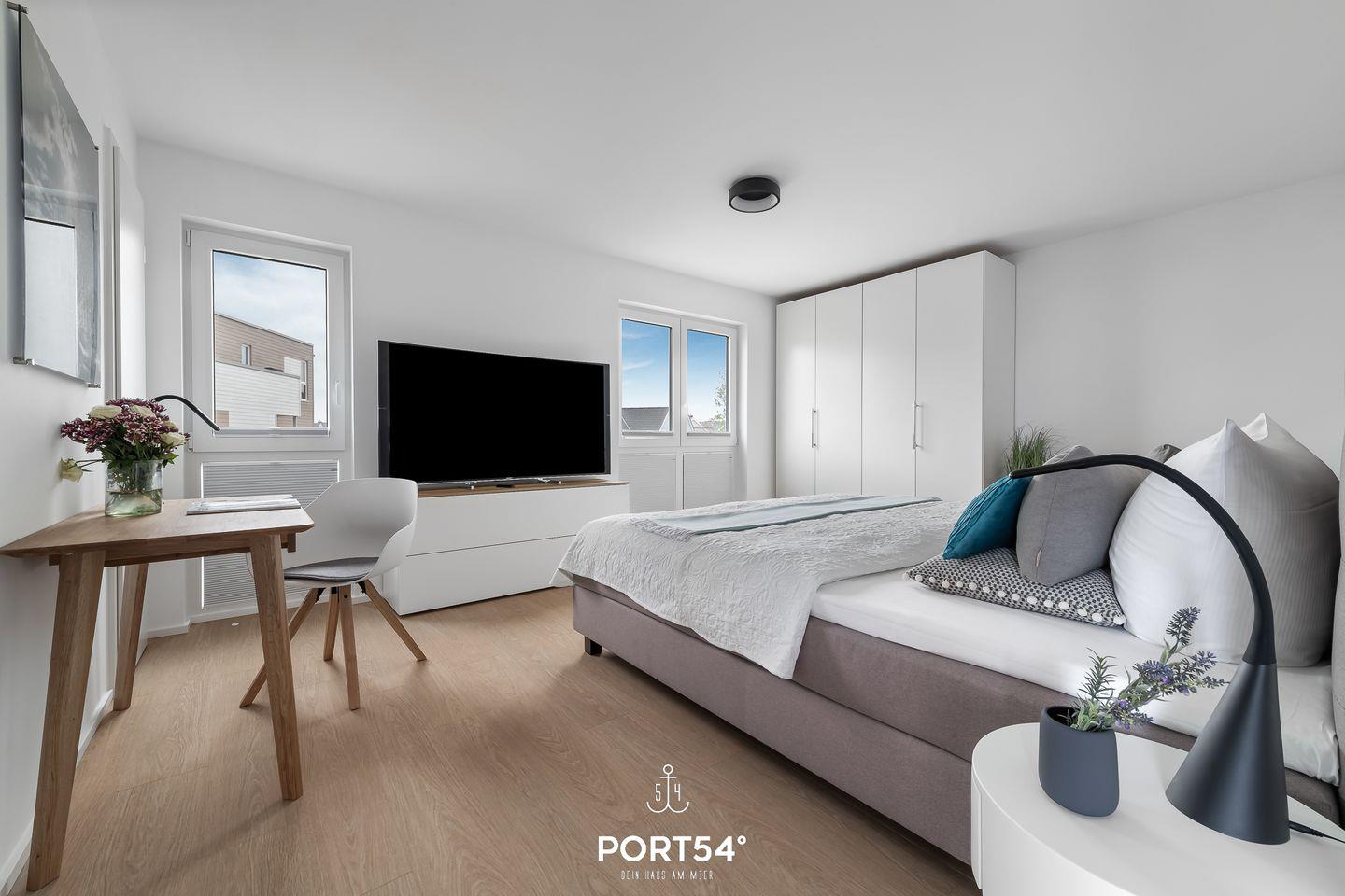 Alle Schlafzimmer verfügen über Boxspringbetten mit Überlänge (200 × 220 cm, 180 × 220 cm), in einem Schlafzimmer sind diese auch getrennt stellbar (zweimal 90 × 220 cm). Die Schlafräume sind mit Flachbildfernsehern sowie USB-Anschlüssen an den Nachttischlampen ausgestattet. Für erholsame Nächte sind in allen Schlafzimmern Fliegenschutzgitter vorhanden.