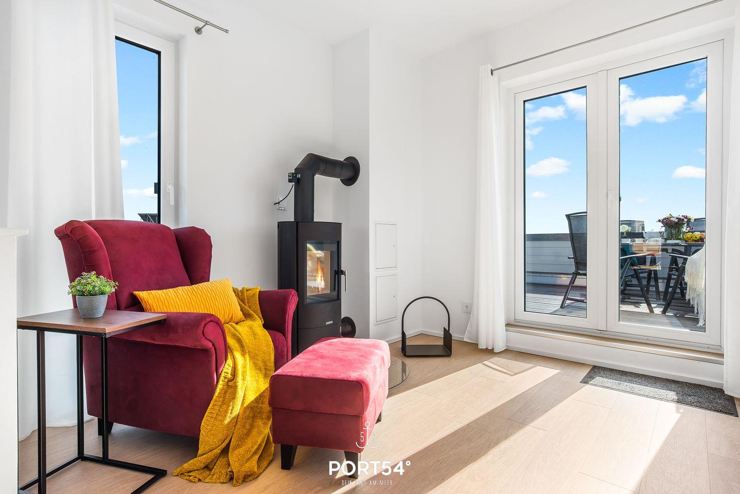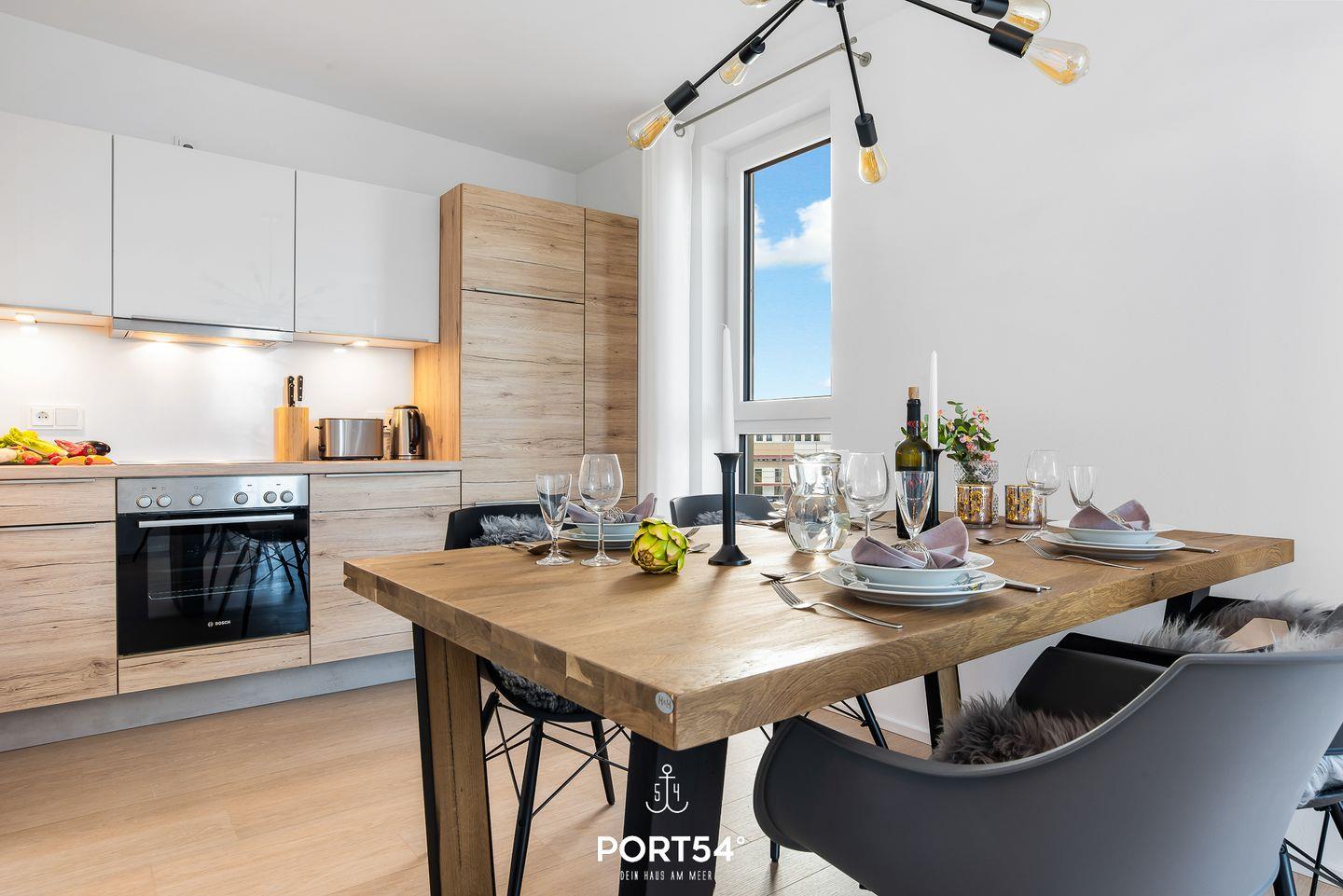 Die Ferienwohnung zeichnet sich nicht nur durch ihre großzügige Größe, sondern auch durch ihre geschmackvolle Einrichtung aus, die eine harmonische Kombination aus modernem Design und gemütlicher Atmosphäre schafft. Das Wohnzimmer lädt Dich mit einem Kaminofen und einer komfortablen Sitzecke zum Verweilen ein, während der offene Essbereich ideal für gesellige Abende ist. Die voll ausgestattete Küche mit hochwertigen Geräten, darunter Elektroherd, Backofen, Geschirrspüler und Nespresso-Kaffeemaschine, lässt keine Wünsche offen.