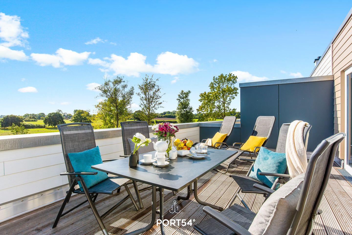 Willkommen im "Steuerbord Olpenitz"! Im offen gestalteten Wohnzimmer mit Kamin und Zugang zur großzügigen Dachterrasse kannst Du es Dir gemütlich machen. Die Küche ist voll ausgestattet und bietet Dir im angrenzenden Essbereich Platz für bis zu 6 Personen. Die drei Schlafzimmer verfügen über ein Doppelbett sowie vier Einzelbetten. Das Duschbad bietet Dir eine Infrarot-Sauna. Die große Dachterrasse ist das Highlight der Unterkunft. Ein PKW-Stellplatz steht direkt vor der Unterkunft zur Verfügung.