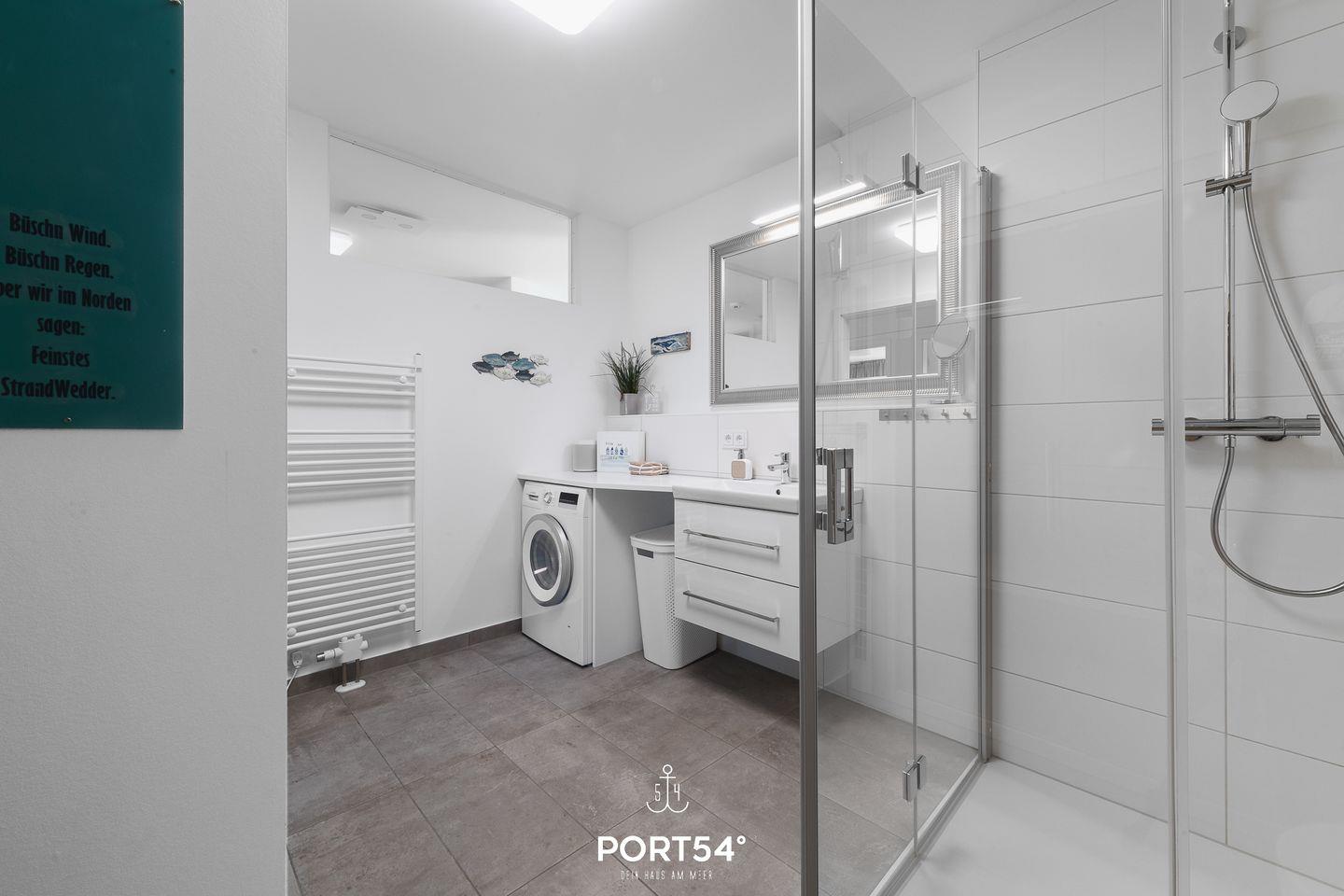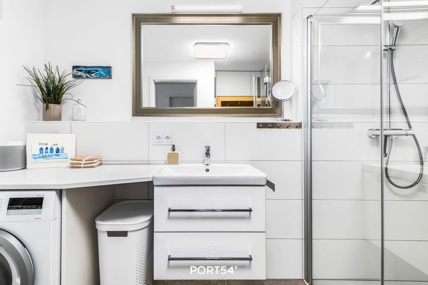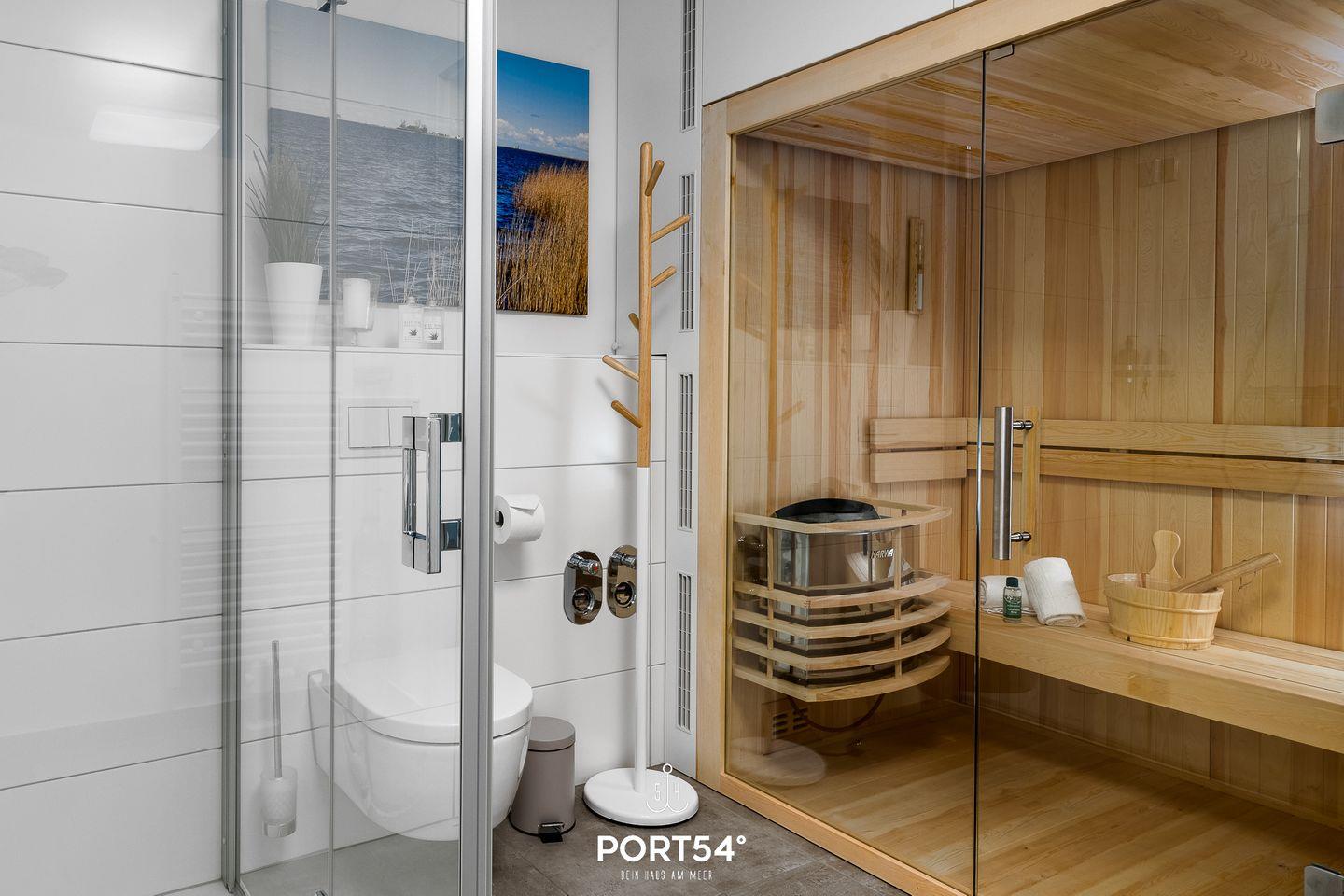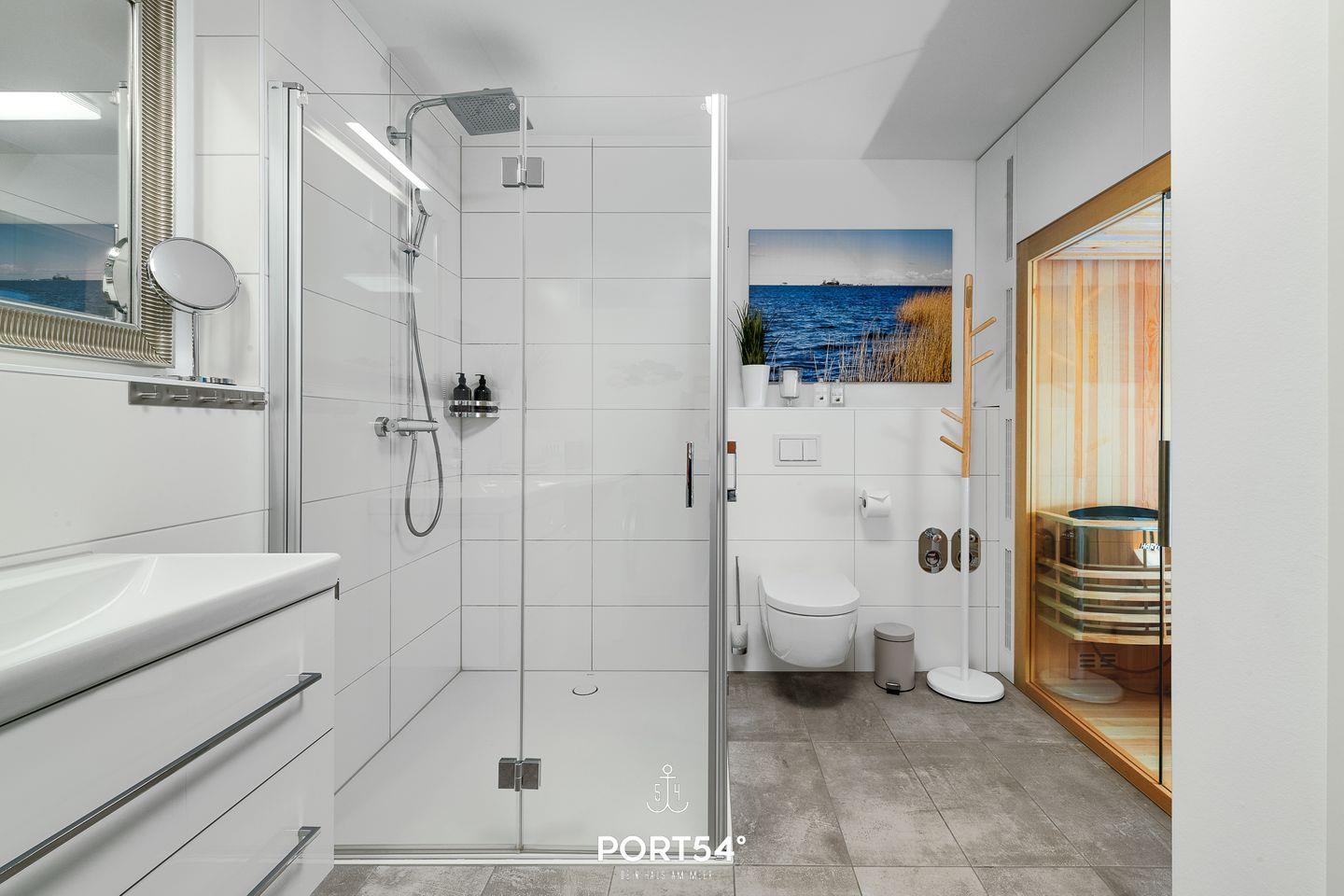 Im Badezimmer erwarten Dich eine extragroße, ebenerdige Dusche sowie die finnische Sauna. Nach langen Strandspaziergängen kannst Du dort herrlich entspannen und zur Ruhe kommen. Über die vorhandene Bluetooth-Box genießt Du auch hier Deine Lieblingsmusik. Kostenfreies WLAN steht Dir selbstverständlich zur Verfügung.