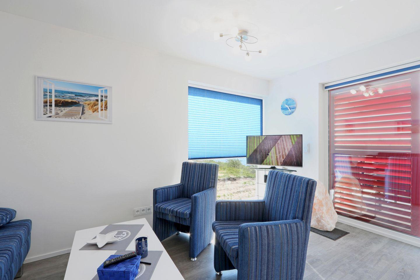 Im großzügigen Wohnbereich laden gemütliche Sitzgelegenheiten dazu ein, die Füße hochzulegen und die Ruhe zu genießen.