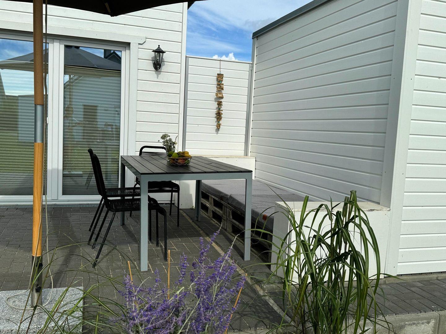 Im Jahr 2023 wurde der Außenbereich um einen Holzschuppen erweitert. Dort befinden sich unter anderem ein Grill, ein Sonnenschirm, Liegen sowie Gartenspielzeug zur allgemeinen Nutzung. Der Schuppen dient zugleich als Sicht- und Windschutz auf der hauseigenen Terrasse. Die angebaute Gartencouch sowie die liebevoll angelegte Bepflanzung ermöglichen Dir schöne Sommerfrühstücke und gemütliche Sommerabende mit Meeresrauschen auf der eigenen Terrasse.