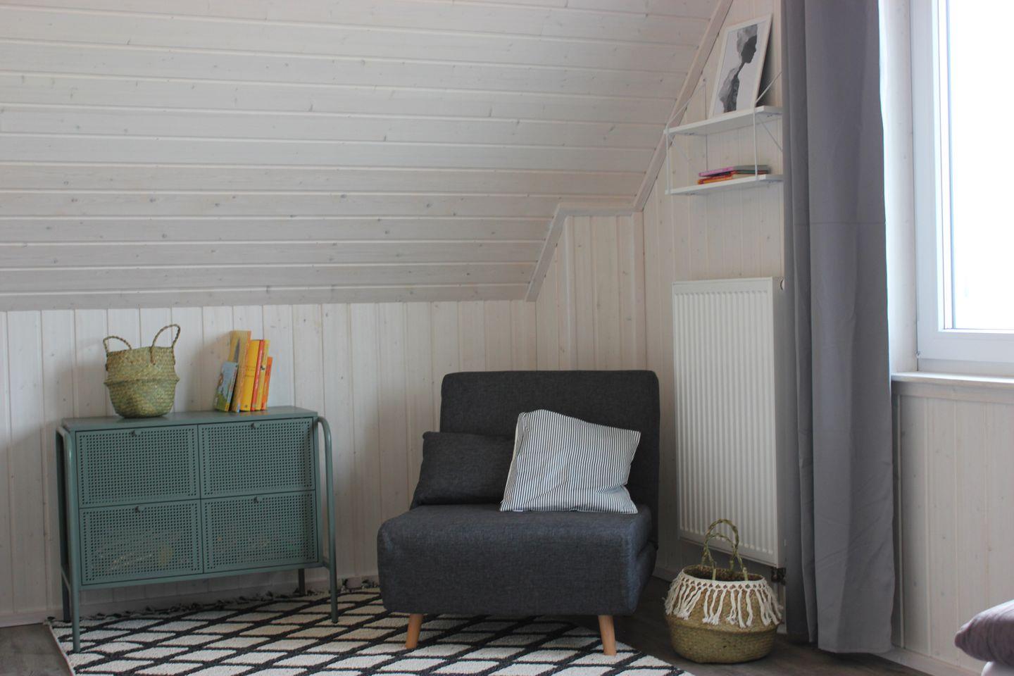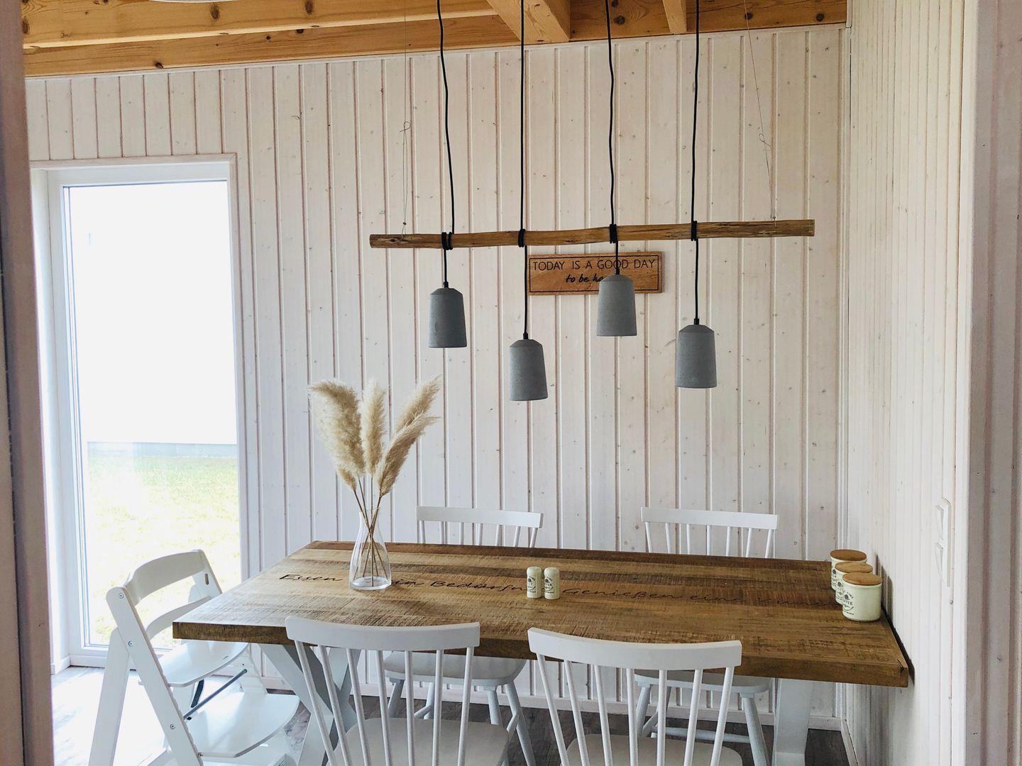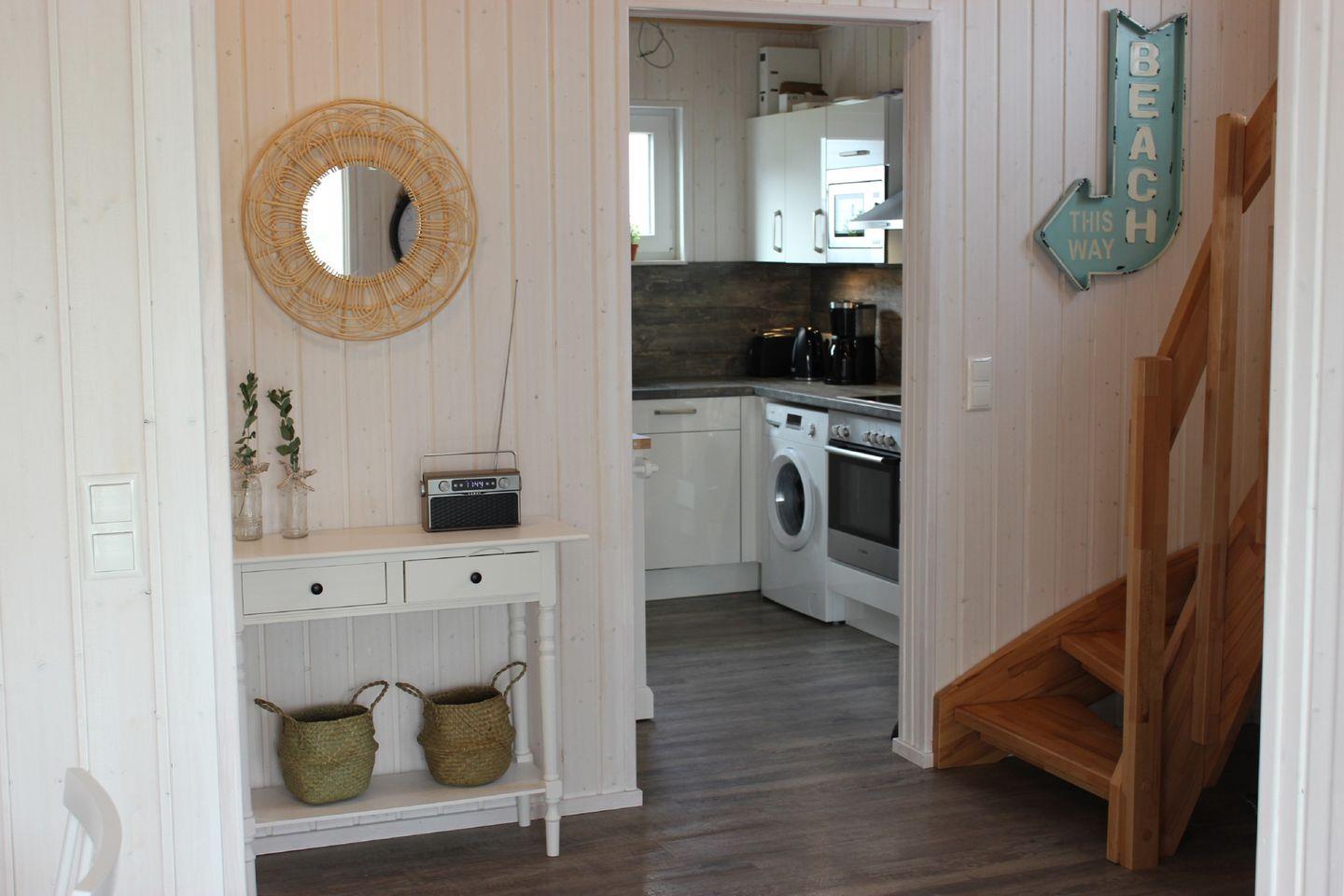 Das Haus verfügt über einen offenen Wohn- und Essbereich, eine Küche, zwei Schlafzimmer sowie zwei Bäder. Nach langen Strandspaziergängen kannst Du auf dem gemütlichen Sofa vor dem Kamin entspannen und Deine Lieblingsserie auf dem Flachbild-TV schauen. Das Sofa lässt sich zu einer Schlafcouch (140 x 200 cm) ausziehen, und zusammen mit dem zusätzlichen Schlafsessel ergeben sich zwei weitere Schlafplätze, die aufgrund der Größe für Kinder vorgesehen sind.