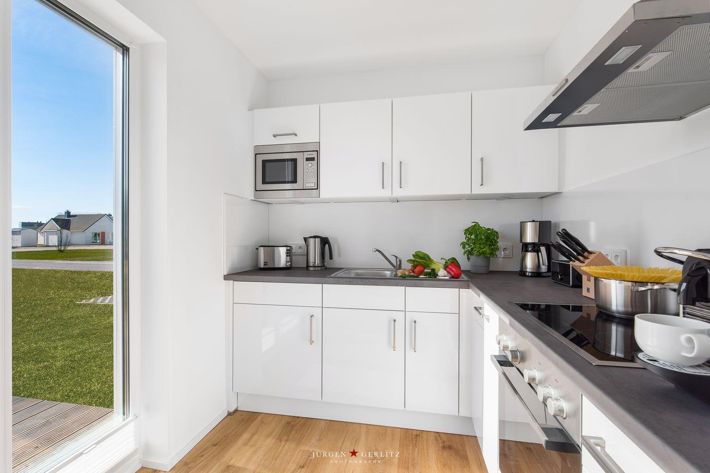 Ein weiteres Highlight des Hauses ist die Terrasse mit Gartenmöbeln und einem Elektrogrill. Hier kannst Du den „Saltwater“-Blick bestaunen und abends die wunderschönen Sonnenuntergänge am Ostseehimmel genießen.