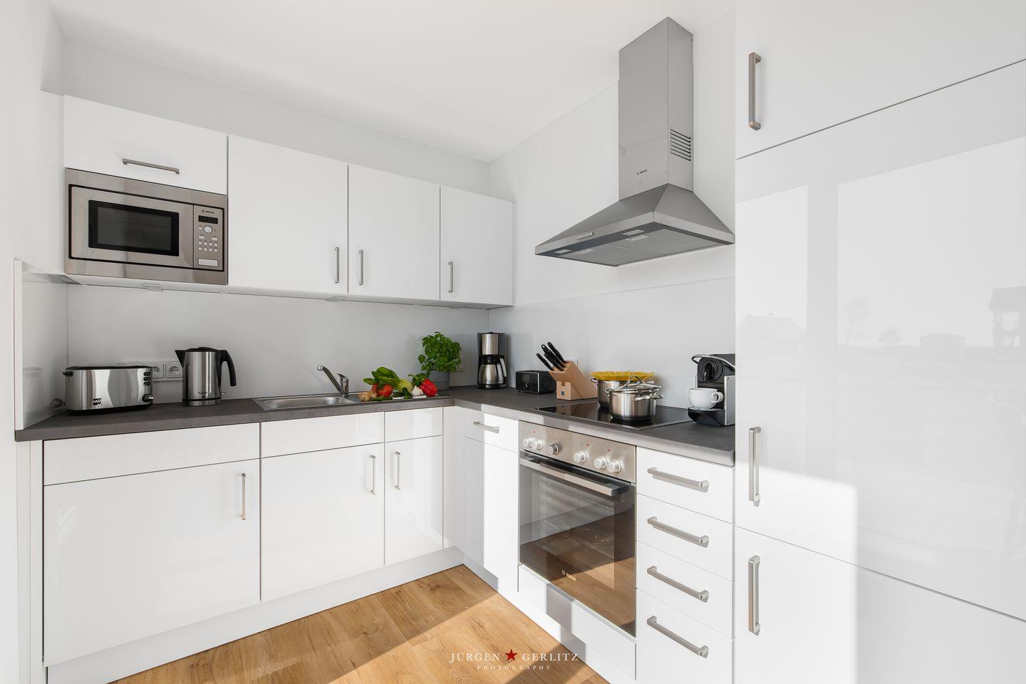 In der Küche befindet sich eine Waschmaschine, sodass auch längeren Aufenthalten nichts im Wege steht.