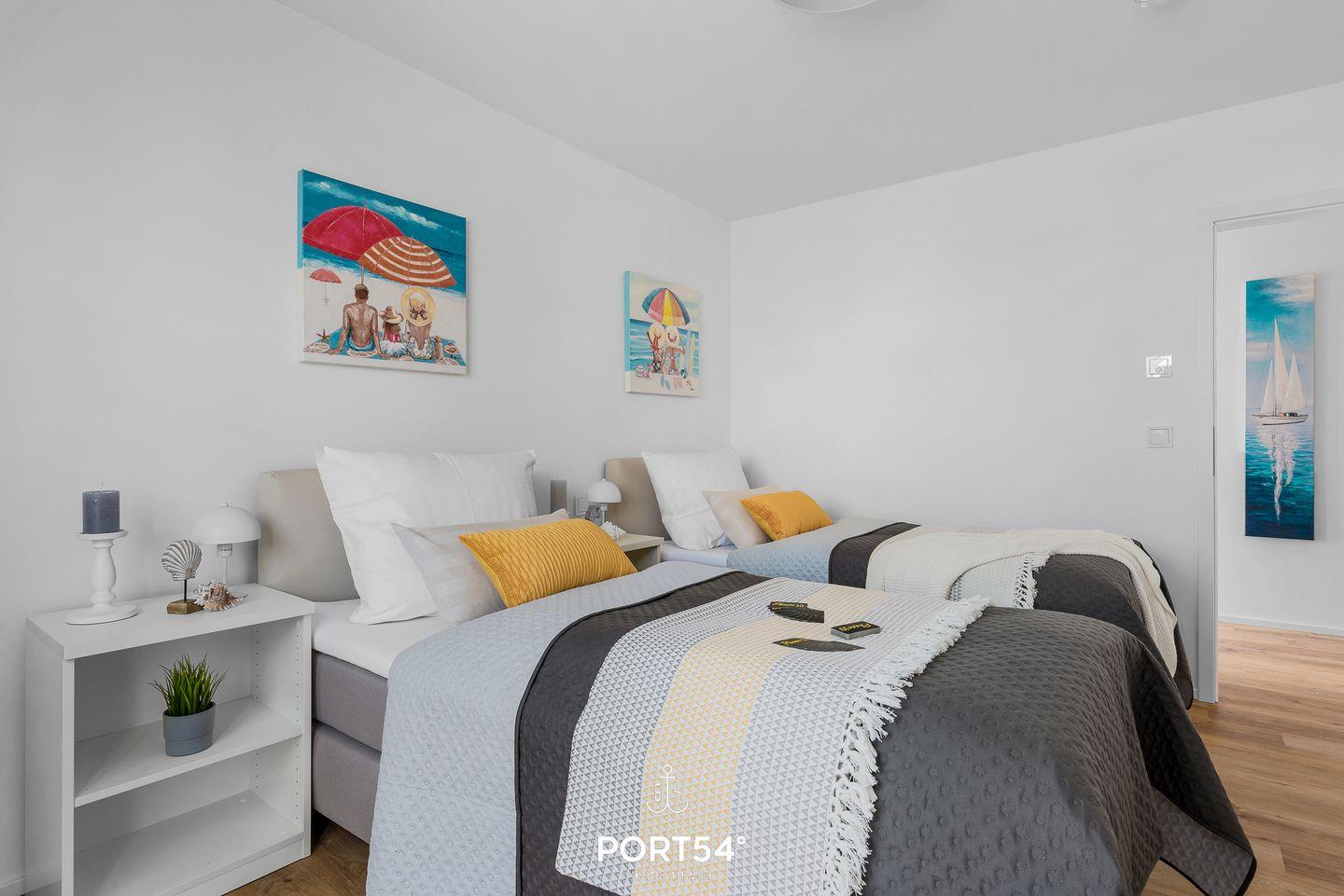 Das Ferienhaus verfügt über zwei Schlafzimmer. Eines davon ist mit einem großen Doppelbett und einem 40-Zoll-Flachbildfernseher ausgestattet. Das andere Zimmer verfügt über 2 bequeme Einzelbetten.