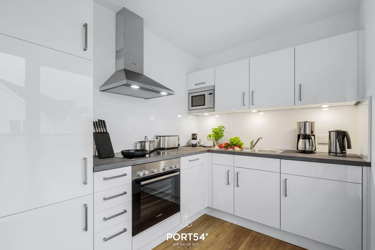 In der Küche befindet sich eine Waschmaschine, sodass auch längeren Aufenthalten nichts im Wege steht.