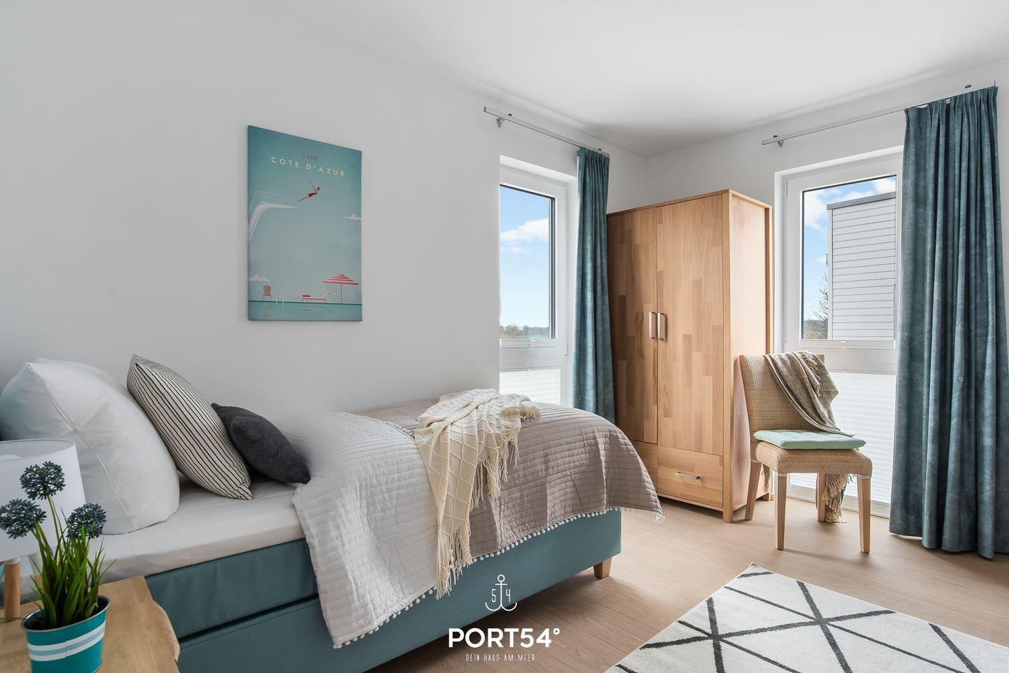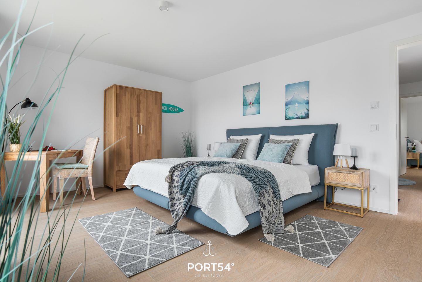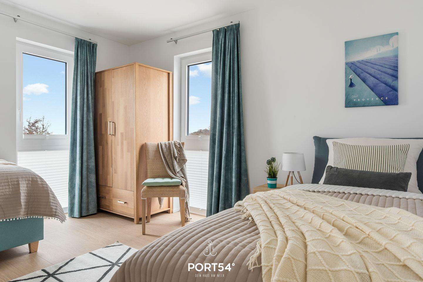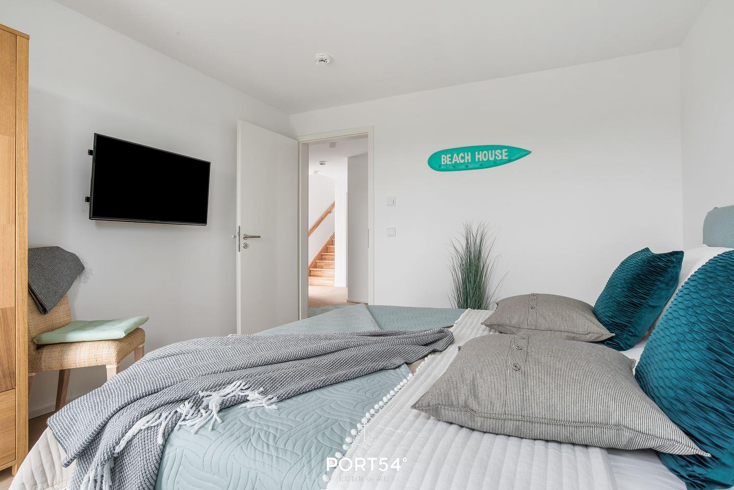 Zwei Schlafzimmer verfügen jeweils über ein großes Doppelbett (180×200cm) und zusätzlich über einen Flachbild-TV. Das dritte Schlafzimmer verfügt über zwei Einzelbetten (90×200cm).