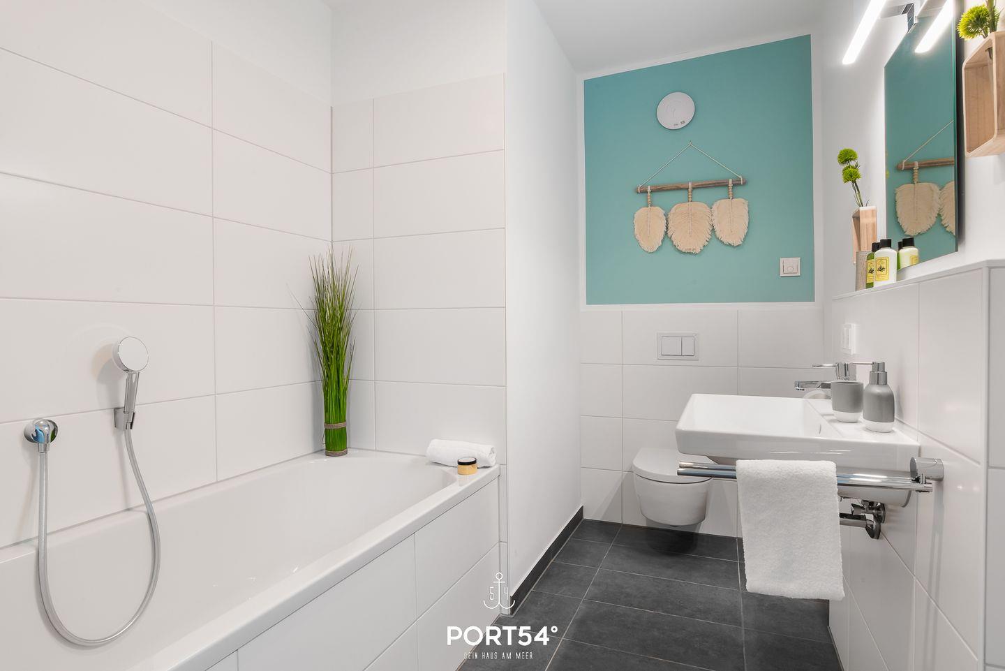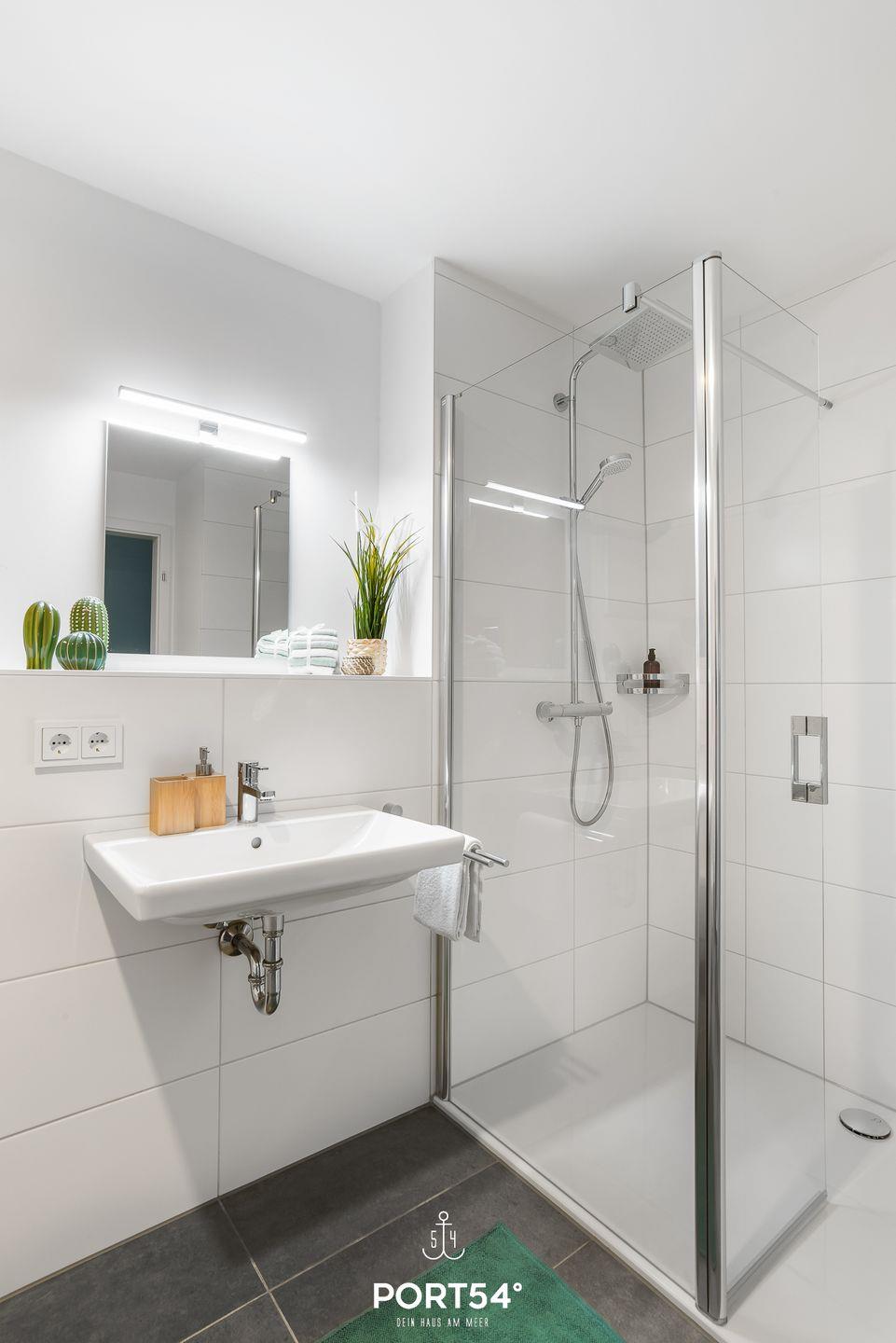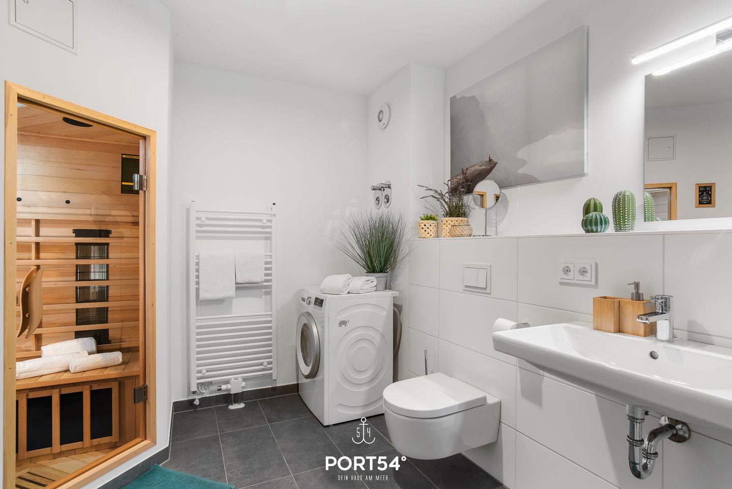 Im Badezimmer im ersten Obergeschoss erwartet Dich eine ebenerdige Dusche. Die Badewanne im zweiten Obergeschoss lädt Dich zu entspannenden Stunden ein. Zusätzlich gibt es eine Infrarot-Kabine – Wellness pur!