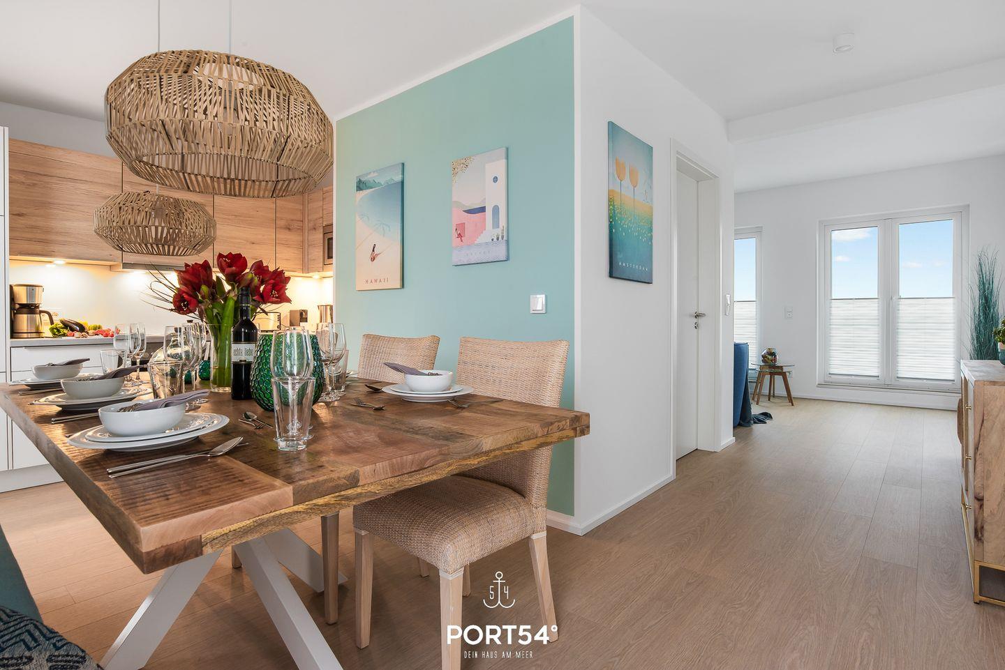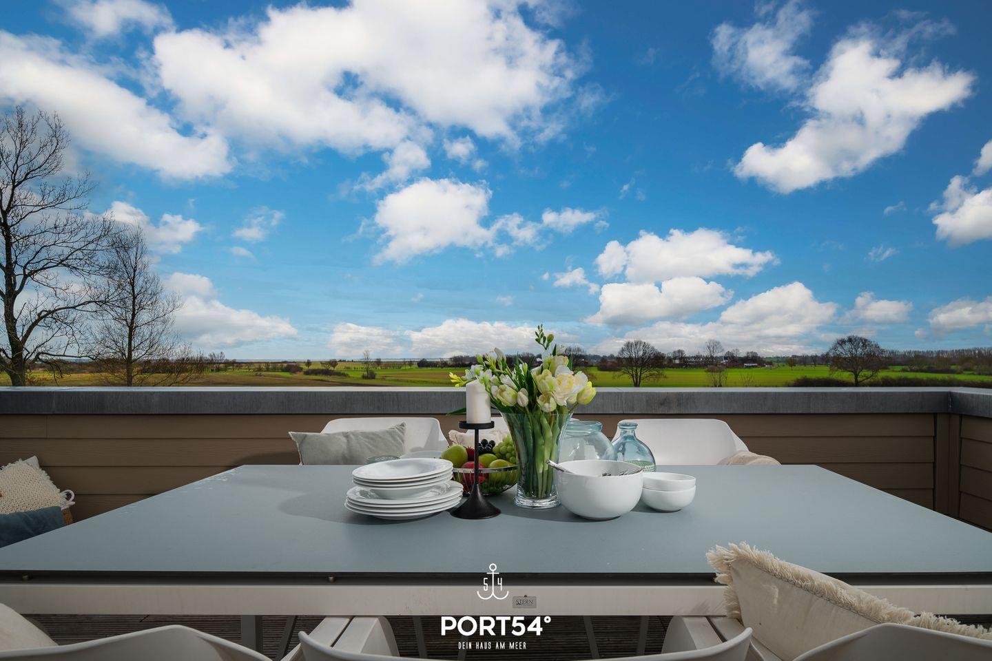 Die Maisonette Lounge „Weltreise“ im ersten und zweiten Obergeschoss bietet Dir neben drei Schlafzimmern auch eine offene, voll ausgestattete Küche, zwei Badezimmer, einen gemütlichen Wohnbereich und eine große Dachterrasse mit einem atemberaubenden Blick über ein unverbautes Naturschutzgebiet.