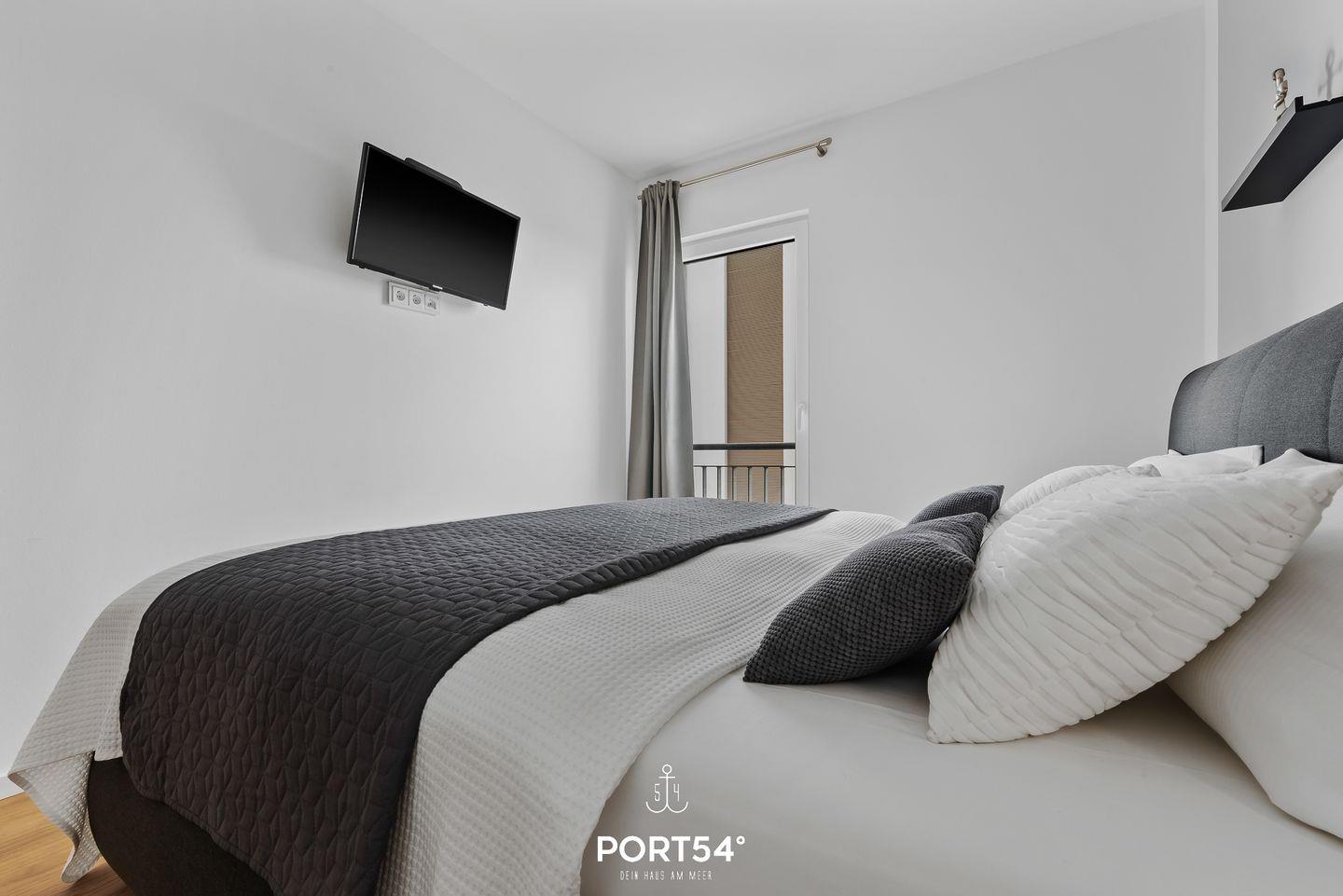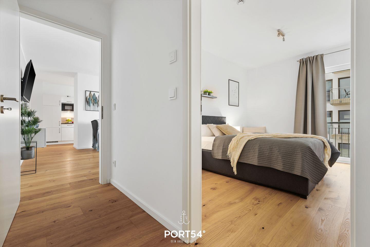 Für erholsame Nächte stehen Dir in der „Seapoint“ zwei Schlafzimmer zur Verfügung, beide mit Doppelbetten (180 x 200 cm und 140 x 200 cm) ausgestattet.