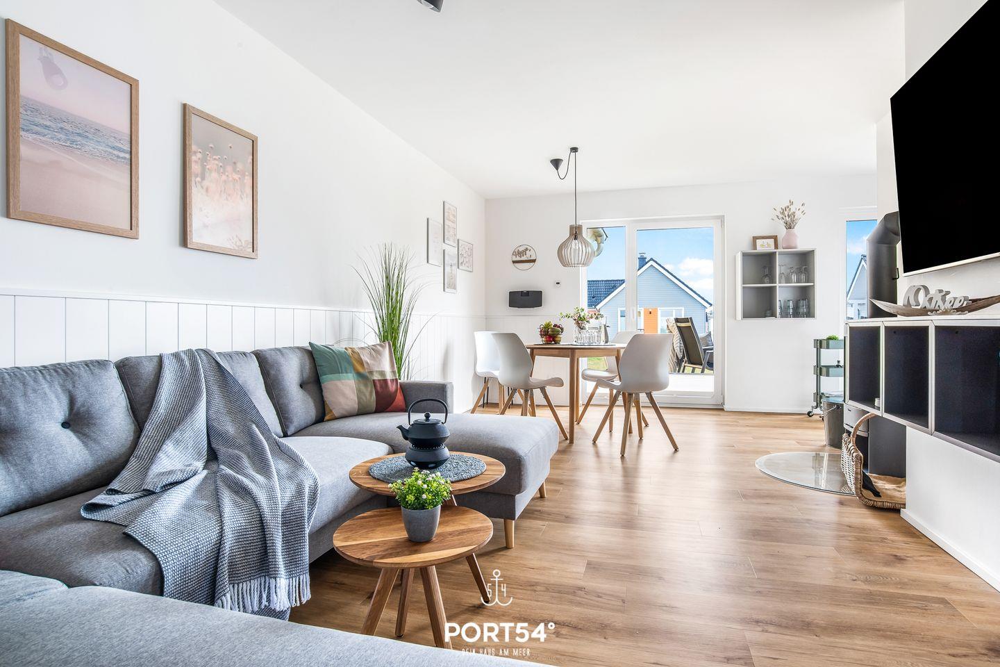 Auf ca. 76 m² Wohnfläche bietet Dir das Ferienhaus „Lütte Strandhus“ mit Hafenblick aus zweiter Reihe Platz für bis zu vier Personen.