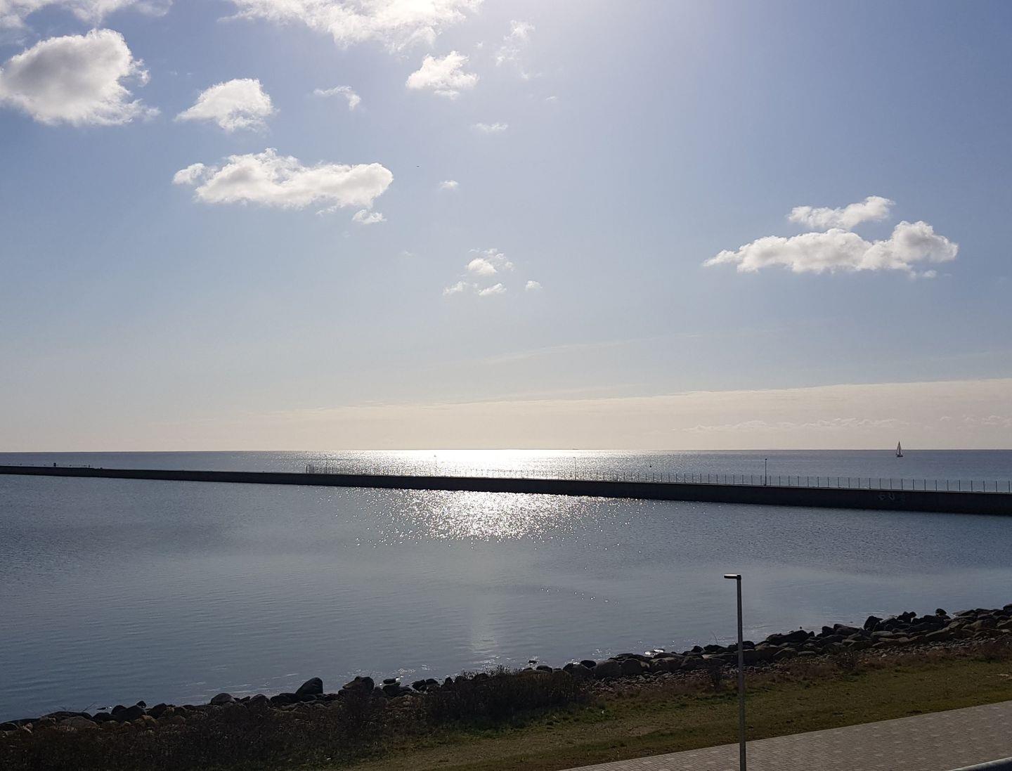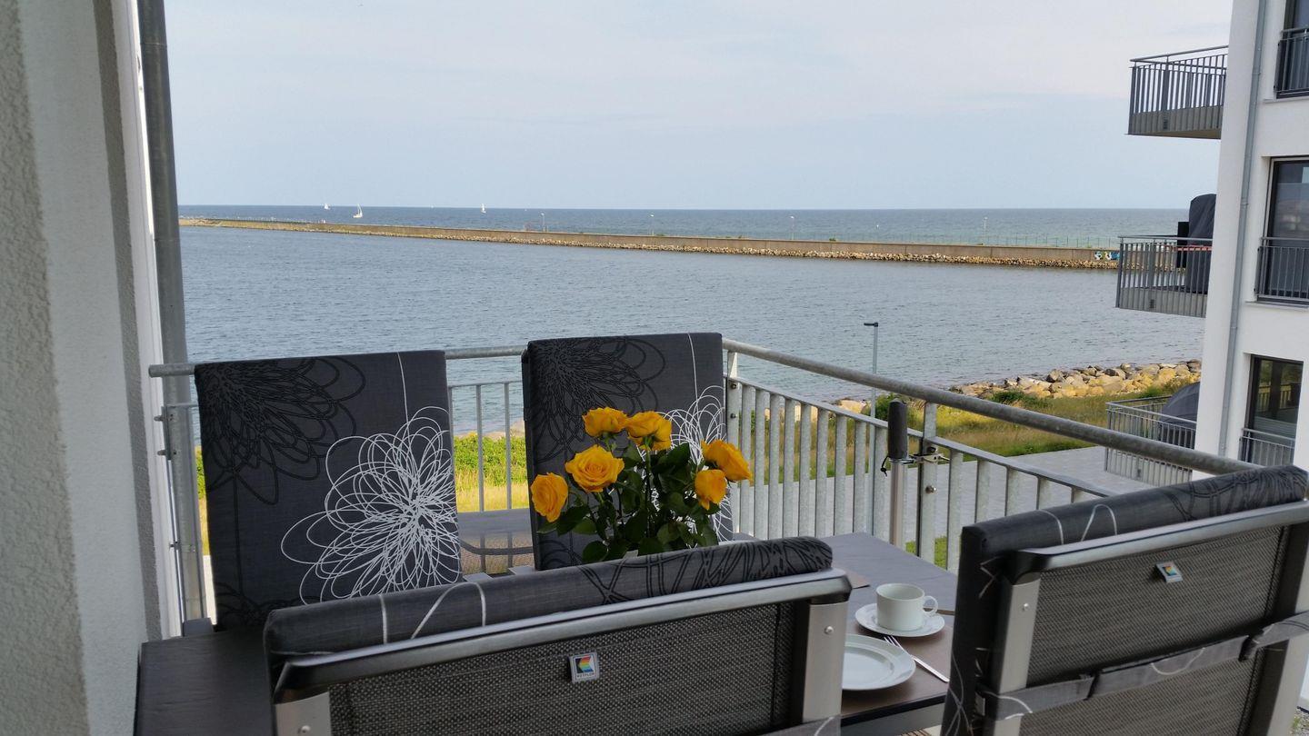 Genieße vom Balkon den herrlichen Ausblick auf Mole und Ostsee.