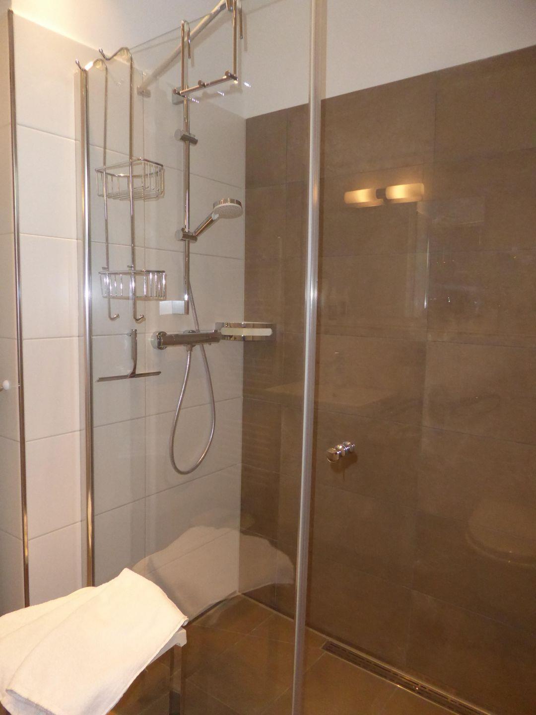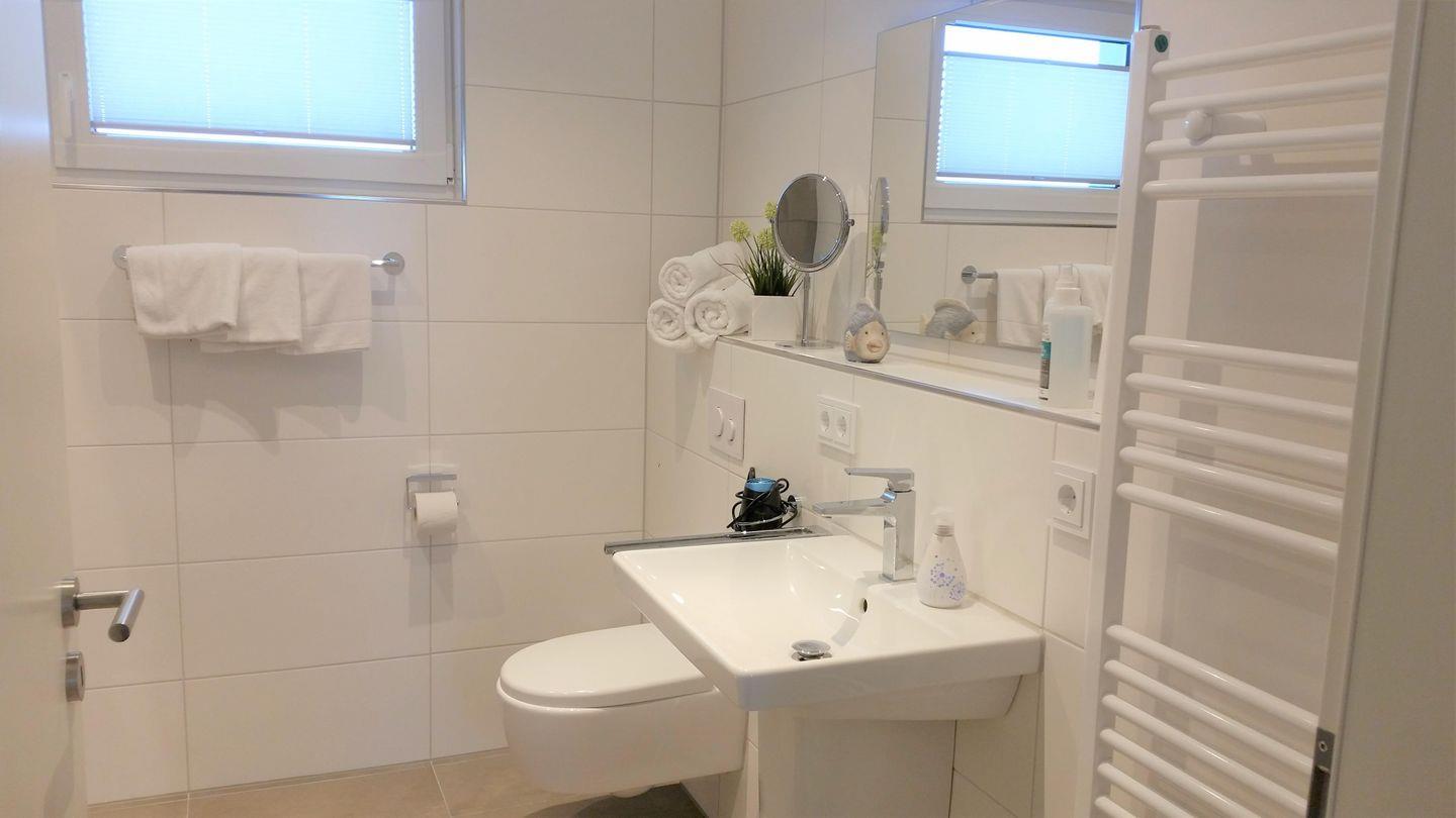 Das Apartment „Sterntaucher“ verfügt über ein voll ausgestattetes, modernes Badezimmer mit Dusche.