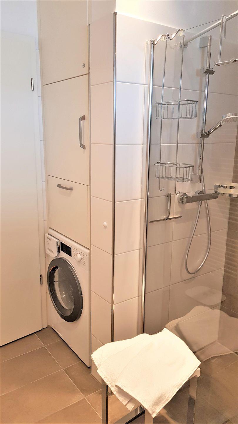 Außerdem befindet sich im Bad ein Waschtrockner.