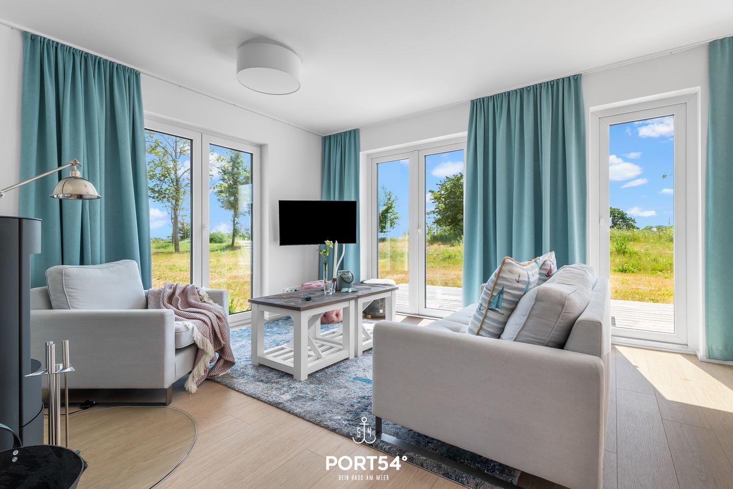 Willkommen in der Ferienwohnung „Kajüte 34“ in Olpenitz. Das Wohnzimmer mit Kamin lädt Dich zum Entspannen ein. Die offene Küche ist modern & voll ausgestattet. Zwei Schlafzimmer sind hochwertig eingerichtet & verfügen jeweils über ein Doppelbett. Das Bad verfügt über eine ebenerdige Dusche und eine finnische Sauna. Das Highlight ist die Terrasse mit Blick in die wunderschöne Natur.
