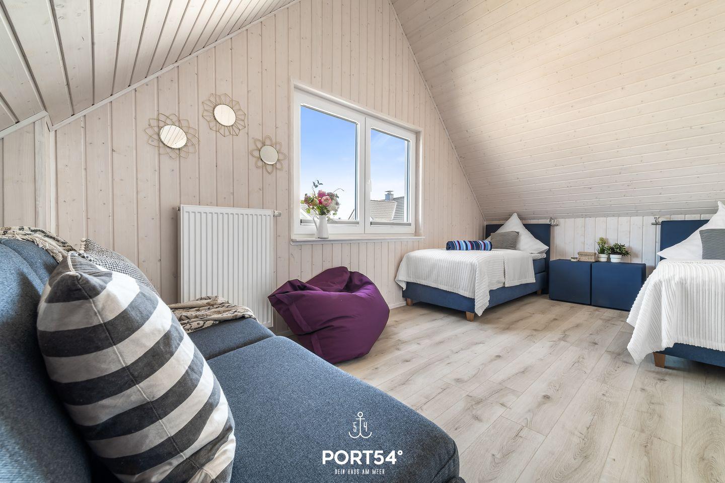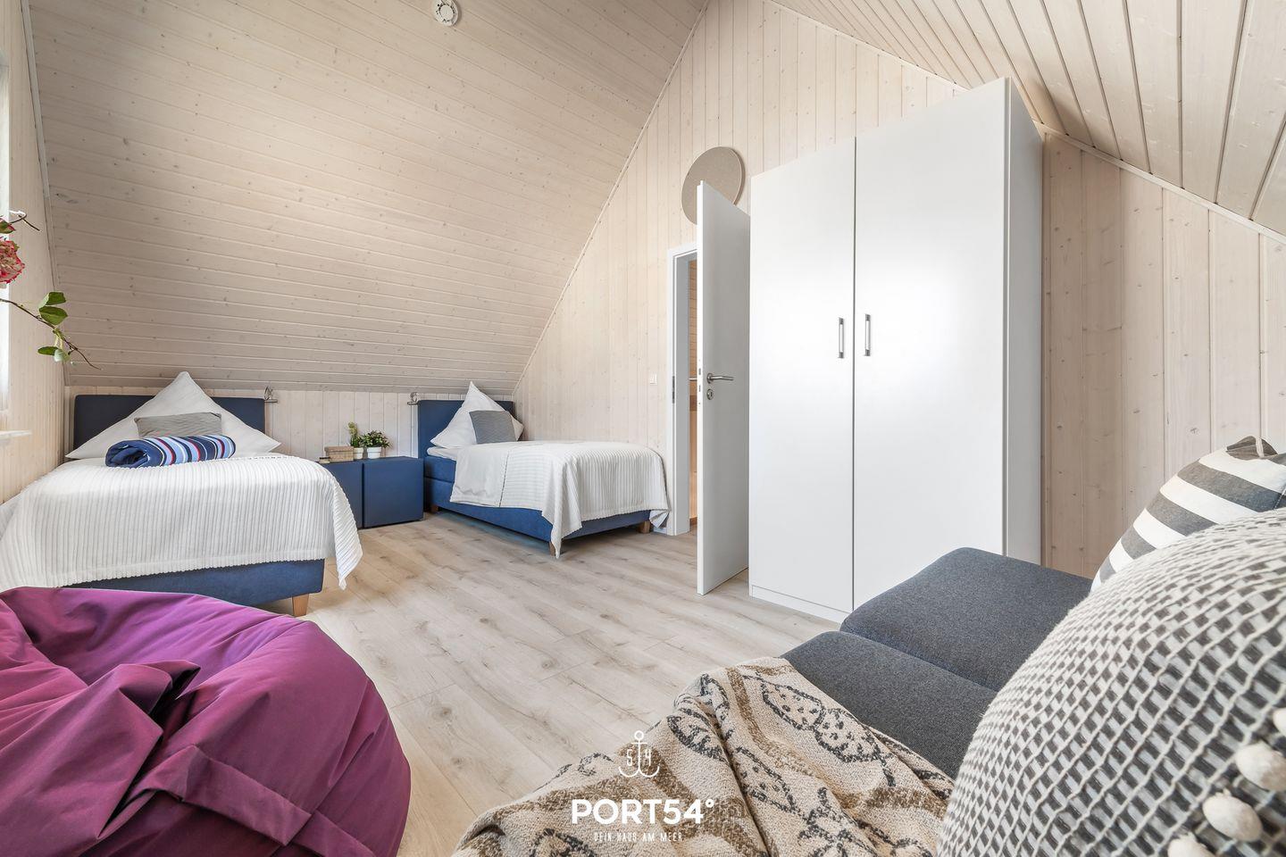 Im anderen Schlafzimmer findest Du zwei Einzelbetten (je 90x200cm) sowie eine Schlafcouch (140x200cm) vor.