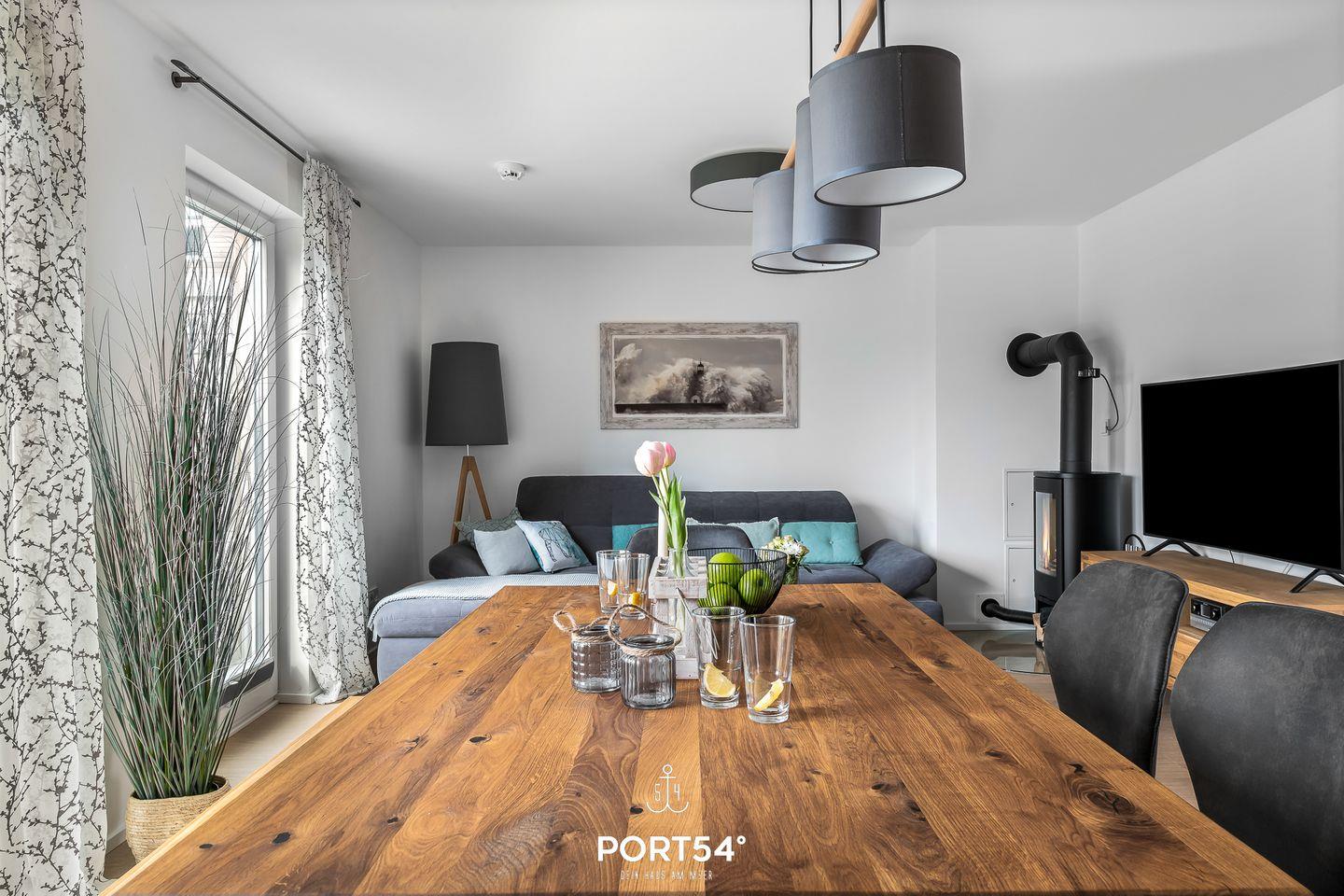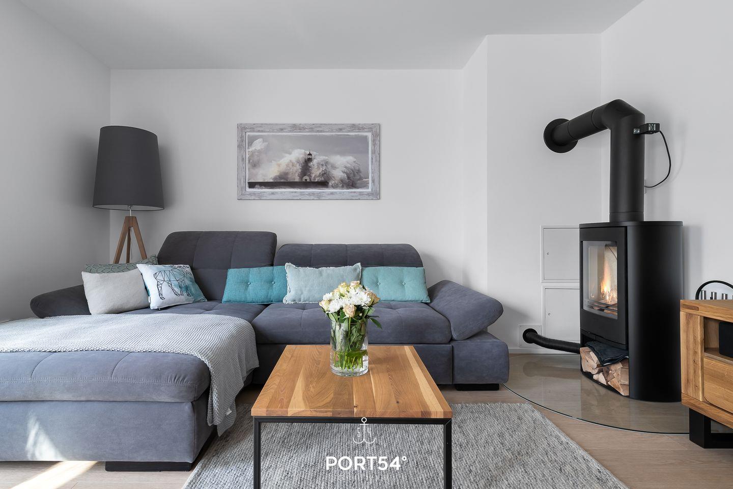 Der Wohnbereich der Wohnung strahlt eine behagliche Atmosphäre aus, besonders in der kalten Jahreszeit, wenn Du es Dir vor dem knisternden Kamin gemütlich machen kannst. Das Schlafsofa bietet zudem Platz für zwei weitere Personen, sodass gemeinsame Stunden noch gemütlicher werden.