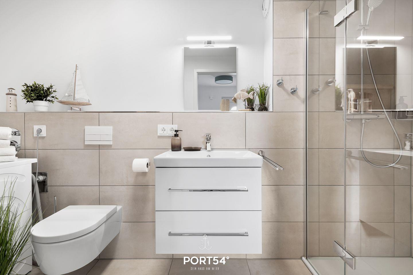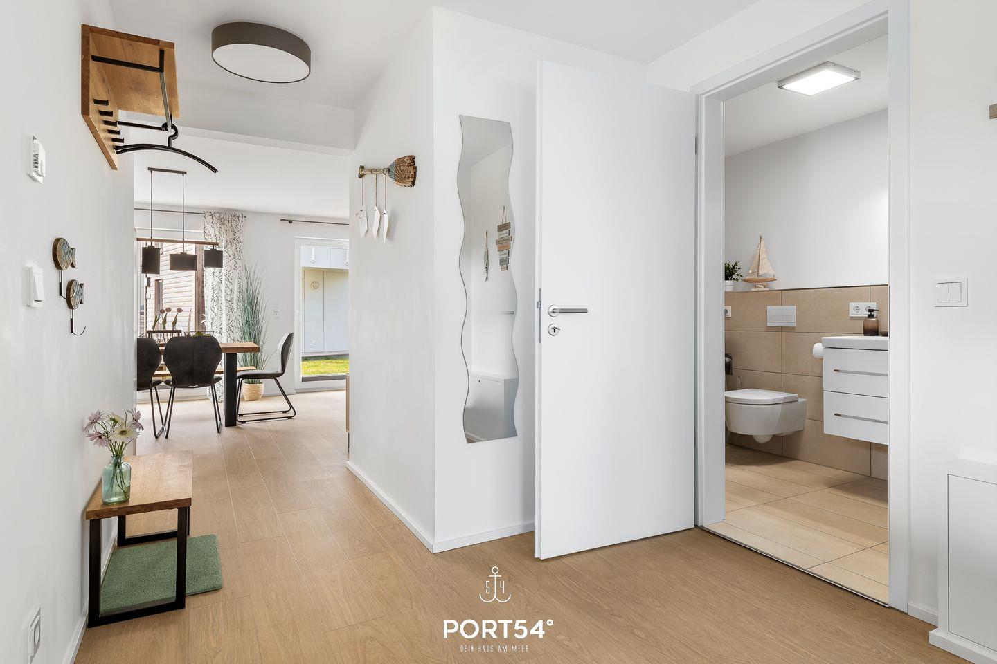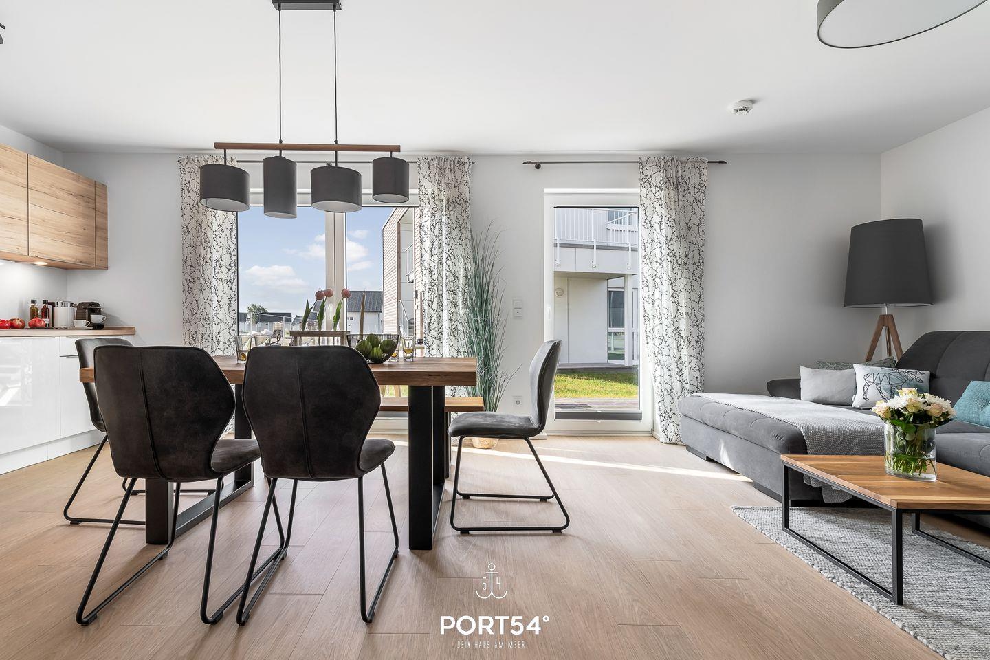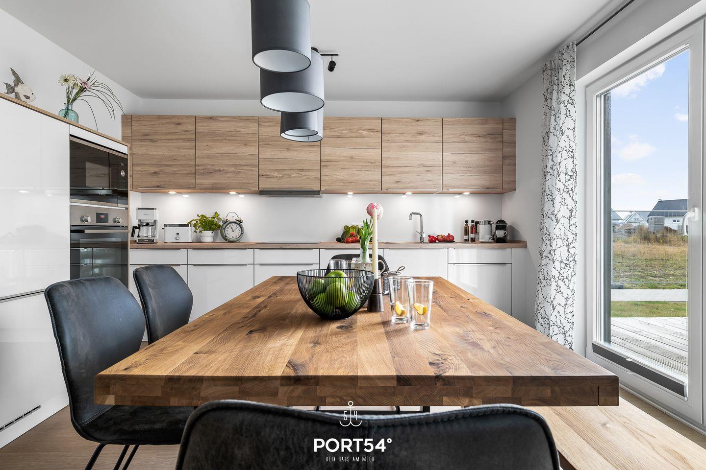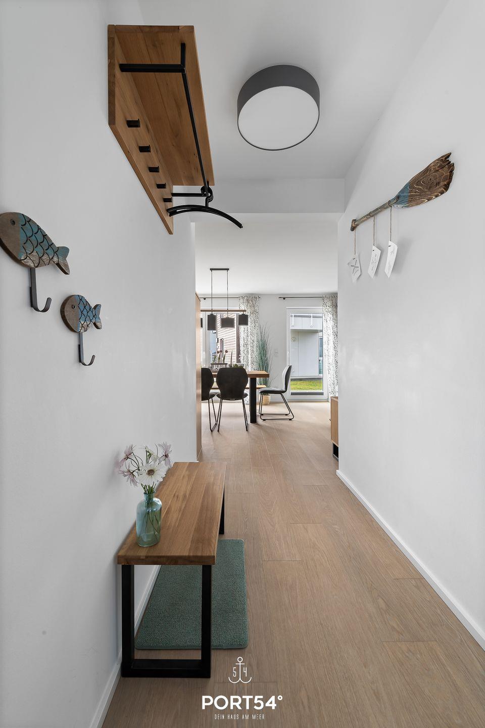 Die großzügige Terrasse, möbliert und mit einem wunderschönen Wasserblick gesegnet, wird schnell zu Deinem Lieblingsplatz. Lehne Dich zurück und genieße hier die strahlenden Sonnenstunden, umgeben von der frischen Ostseeluft.