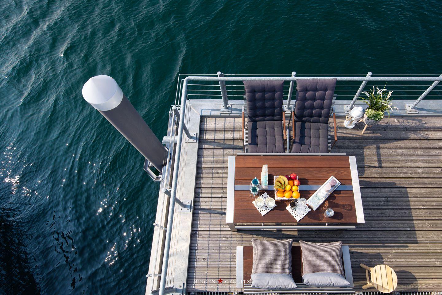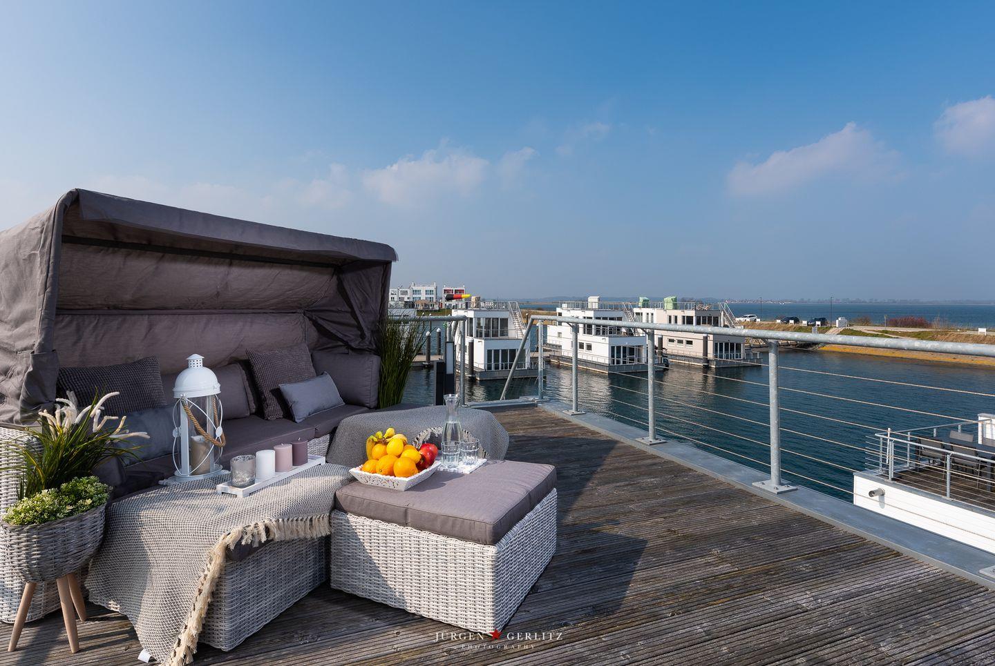 Tokai - schwimmendes Haus, Sauna, Dachterrasse mit 360° Wasserblick, Strandkorb