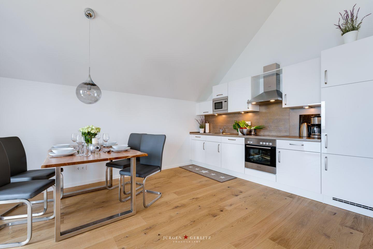 Die offene Küche ist voll ausgestattet, sodass Du hier wunderbar gemeinsam kochen kannst.
