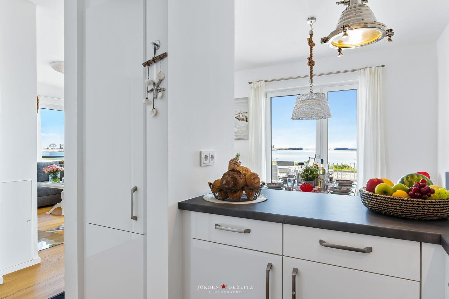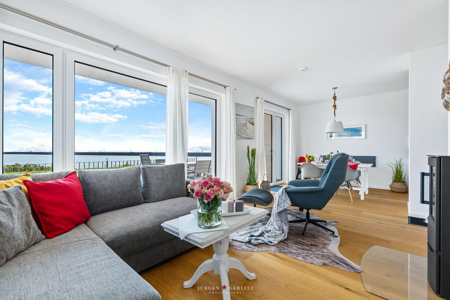 Mit bodentiefer Fensterfront gestaltet sich der großzügige Wohn- und Essbereich lichtdurchflutet und überzeugt Dich mit einem traumhaften „Himmel & Meer“-Weitblick – was will man mehr? Das stilvolle Interieur und die hochwertige Ausstattung bieten Dir jeglichen Urlaubskomfort.