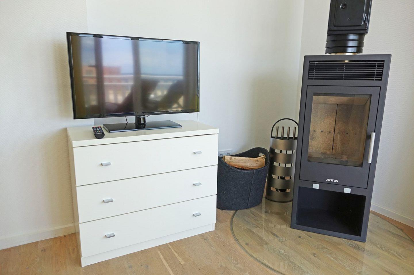 Im 1. Obergeschoss bietet das „Strandgut“ zwei komfortable Schlafzimmer. Eines ist mit einem gemütlichen Doppelbett (180x200?cm) ausgestattet, und das andere Schlafzimmer bietet zwei Einzelbetten (je 90x200?cm). Für erholsame Urlaubsnächte bieten beide Schlafzimmer Verdunklungsmöglichkeiten und Insektenschutzgitter. Bei „Schietwetter“ kannst Du es Dir vor dem Kamin im Dachgeschoss (3.?OG) gemütlich machen und die Seele baumeln lassen.