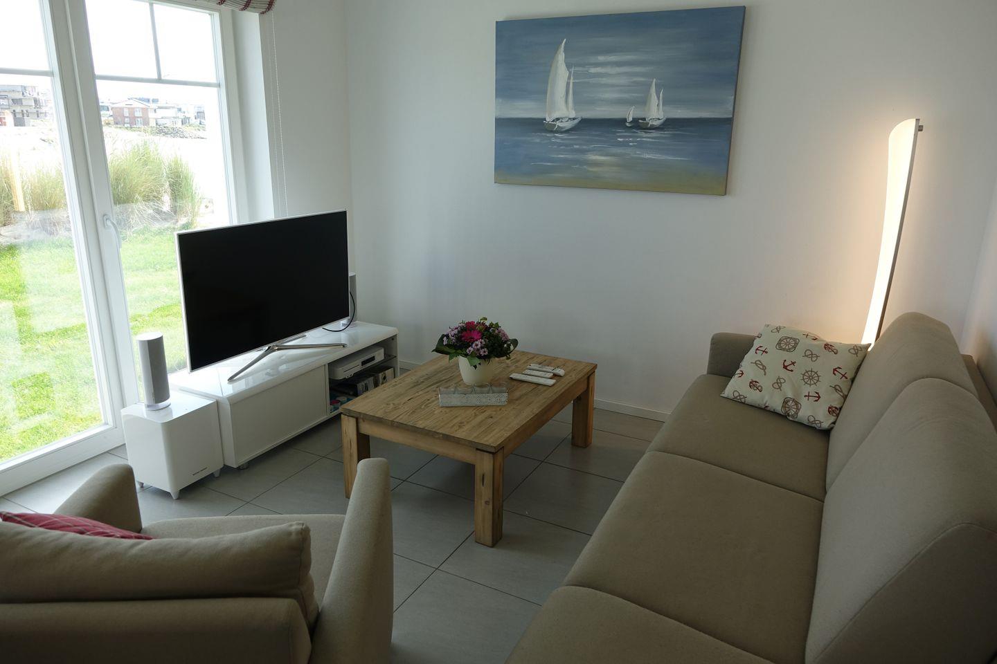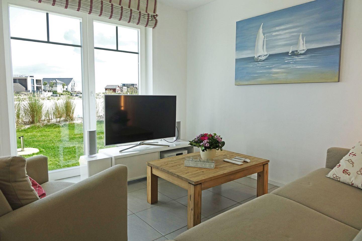 Das luxuriöse Ferienhaus direkt am Strand bietet auf 85m² Platz für 4 Personen. Der Wohn- und Essbereich mit Küche und Kamin bietet Zugang zur Terrasse. Im 1. OG sind 2 Schlafzimmer. Die 2 Bäder bieten 1 Whirlwanne, eine Dusche und eine finnische Sauna. Vor dem Haus ist ein Stellplatz, inkl. Ladestation für Elektroautos und E-Fahrräder.