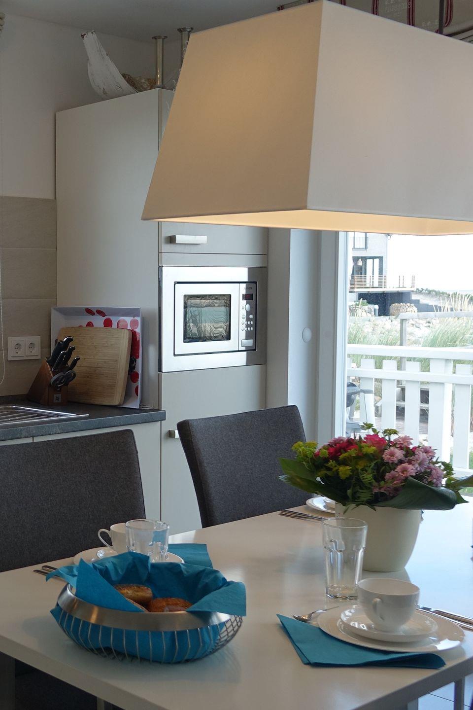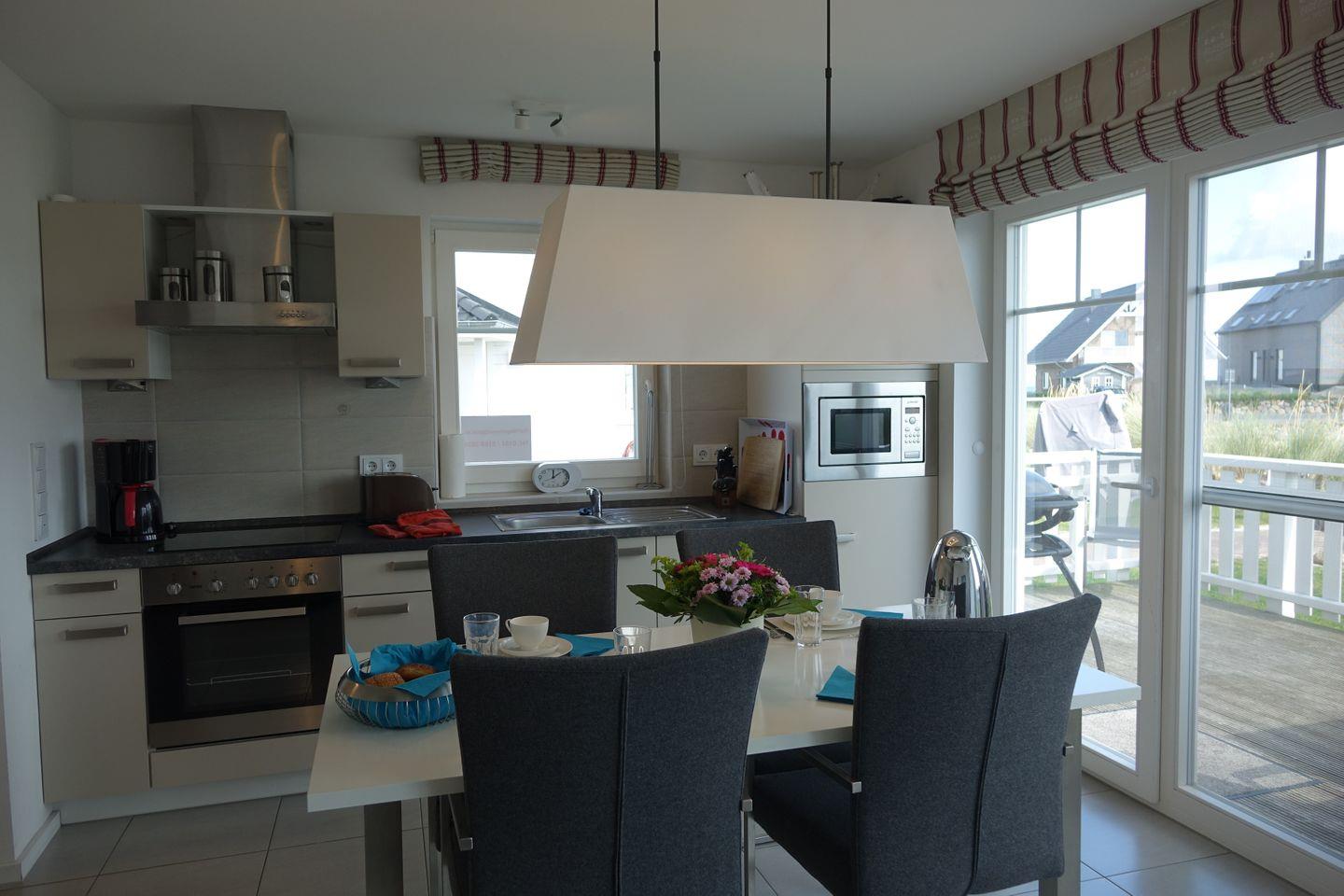 Die vollausgestattete Küche verspricht gesellige Kochabende mit der ganzen Familie. Von dort aus kannst Du durch die Terrassentür auf die Sonnenterrasse treten und den wunderschönen Blick aufs Wasser genießen. Auf der Terrasse kannst Du Deinen Morgenkaffee dank des Kaffeevollautomaten genießen oder abends an lauen Sommerabenden an dem Elektrogrill grillen.