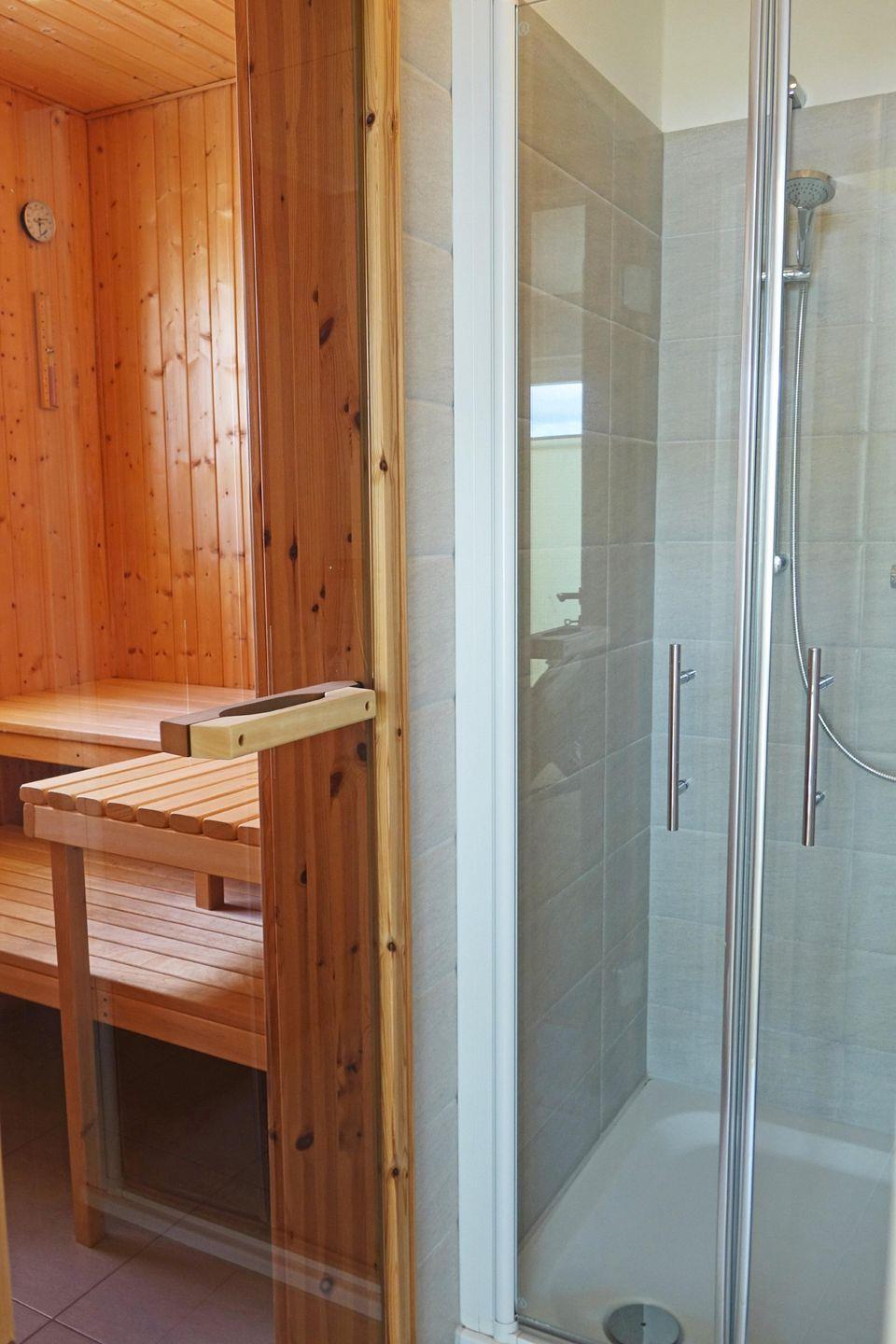 In einem der zwei Badezimmer erwartet Dich unter anderem ein Handtuchtrockner, ein Föhn und eine Whirlwanne, in der Du Dich nach langen Spaziergängen aufwärmen und dem Alltagsstress entfliehen kannst. Das andere Badezimmer bietet neben einer ebenerdigen Dusche das absolute Highlight: eine finnische Sauna! Wellness pur!
