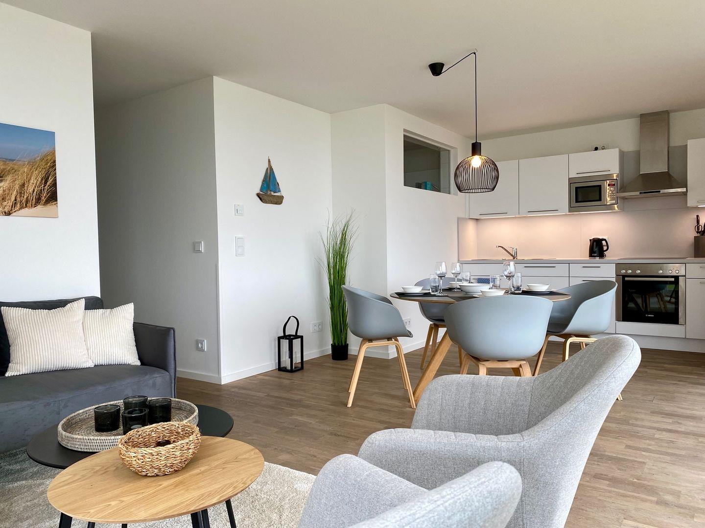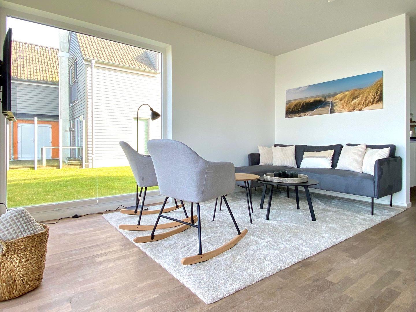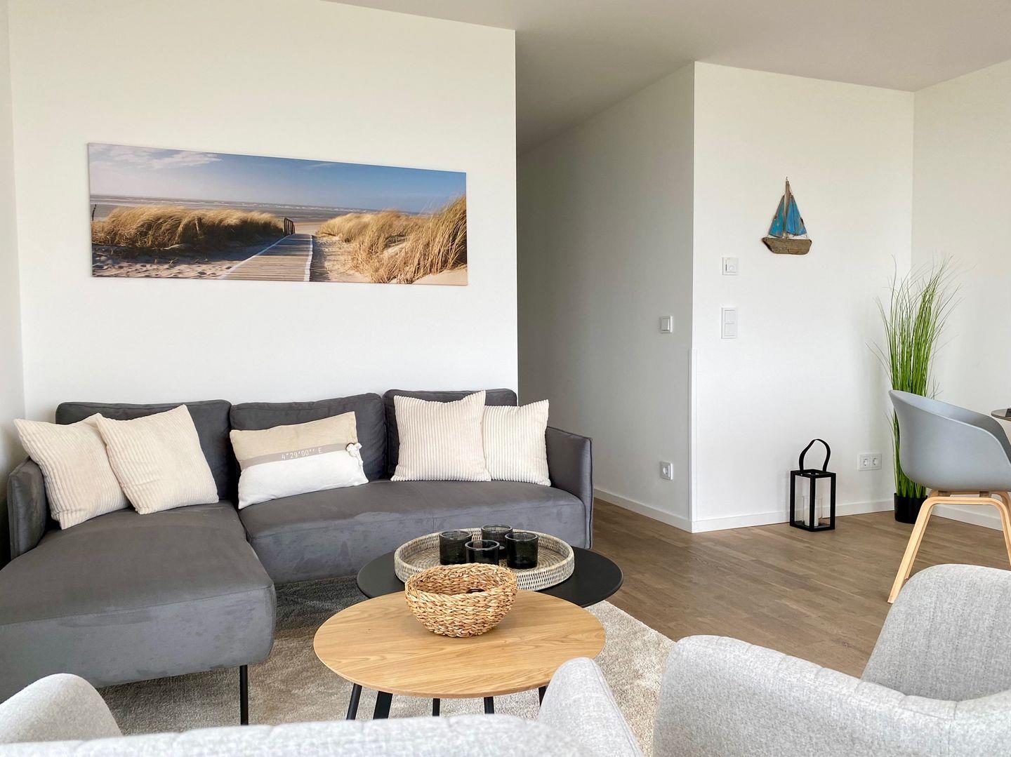 Der Wohnbereich ist ein Rückzugsort, um dem Alltag zu entfliehen und inmitten einer entspannten Atmosphäre zur Ruhe zu kommen.