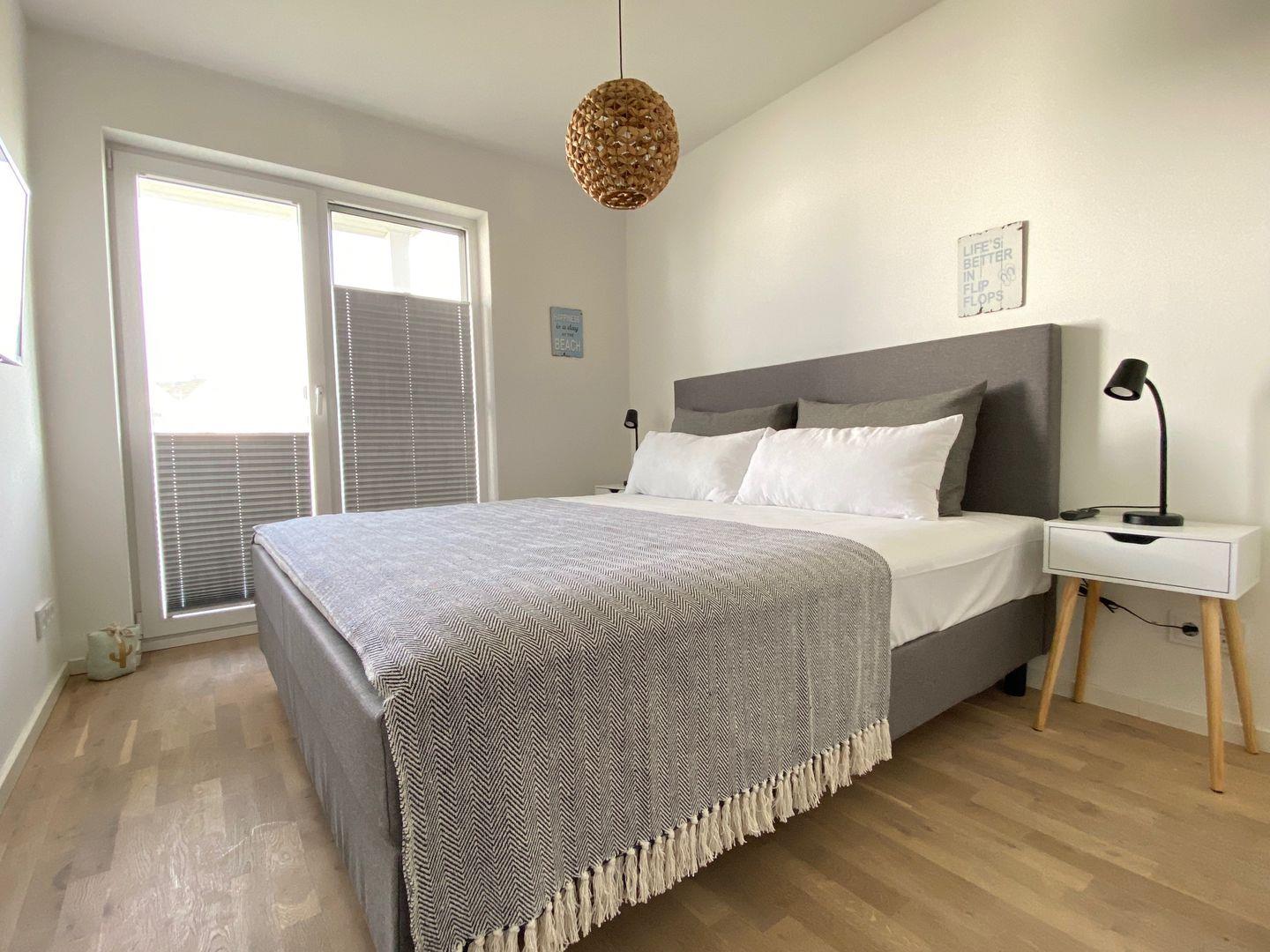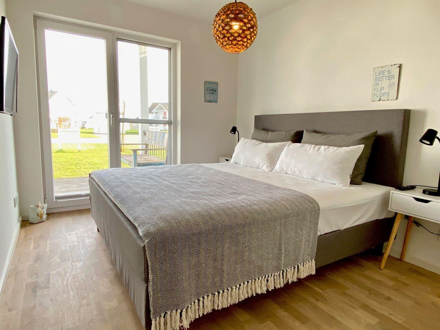 Die beiden Schlafzimmer der Ferienwohnung versprechen Dir erholsamen Schlaf – beide sind mit großzügigen Doppelbetten (180 × 200 cm) ausgestattet, eines davon verfügt über einen Smart-TV. Beide Schlafzimmer sind mit Insektenschutzgittern versehen, um Dir ruhige Nächte zu garantieren.